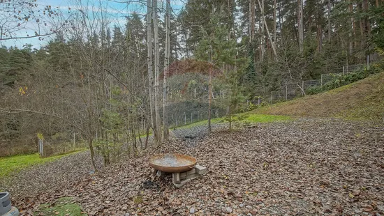 Teren de 1800 mp permite folosirea lui ca si loc de joaca. zona de hamac, mini livada, piscina, platforma de realaxare in padure, loc de joacă.