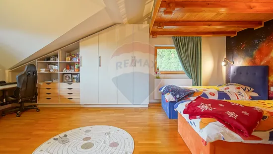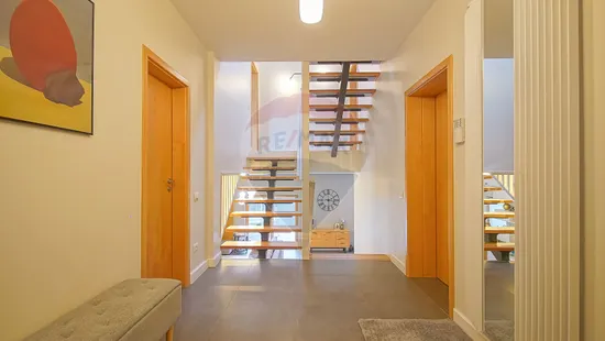 Suprafață utilă de 200 mp, garaj, spatii de depozitare si curte amenajata pe terase naturale, vegetatie matura, zone de relaxare, fiind o locatie cautata de cei care isi doresc apropierea de oras dar fara compromis.