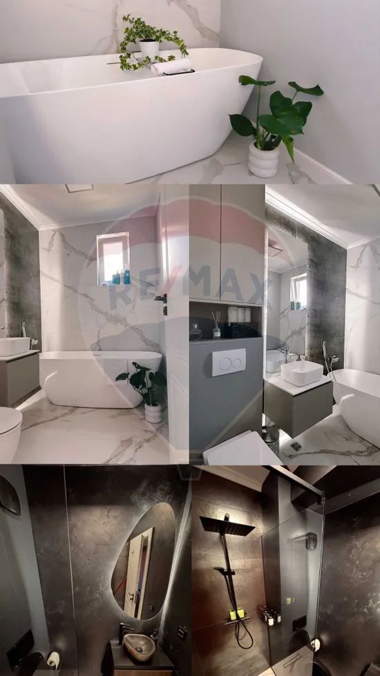 - 2 băi (o baie mică cu duș și ventilație, o baie mare cu cadă freestanding);