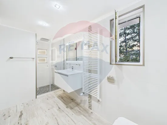 Încălzirea și apa caldă sunt asigurate de o centrală termică Immergas de 32 kW.