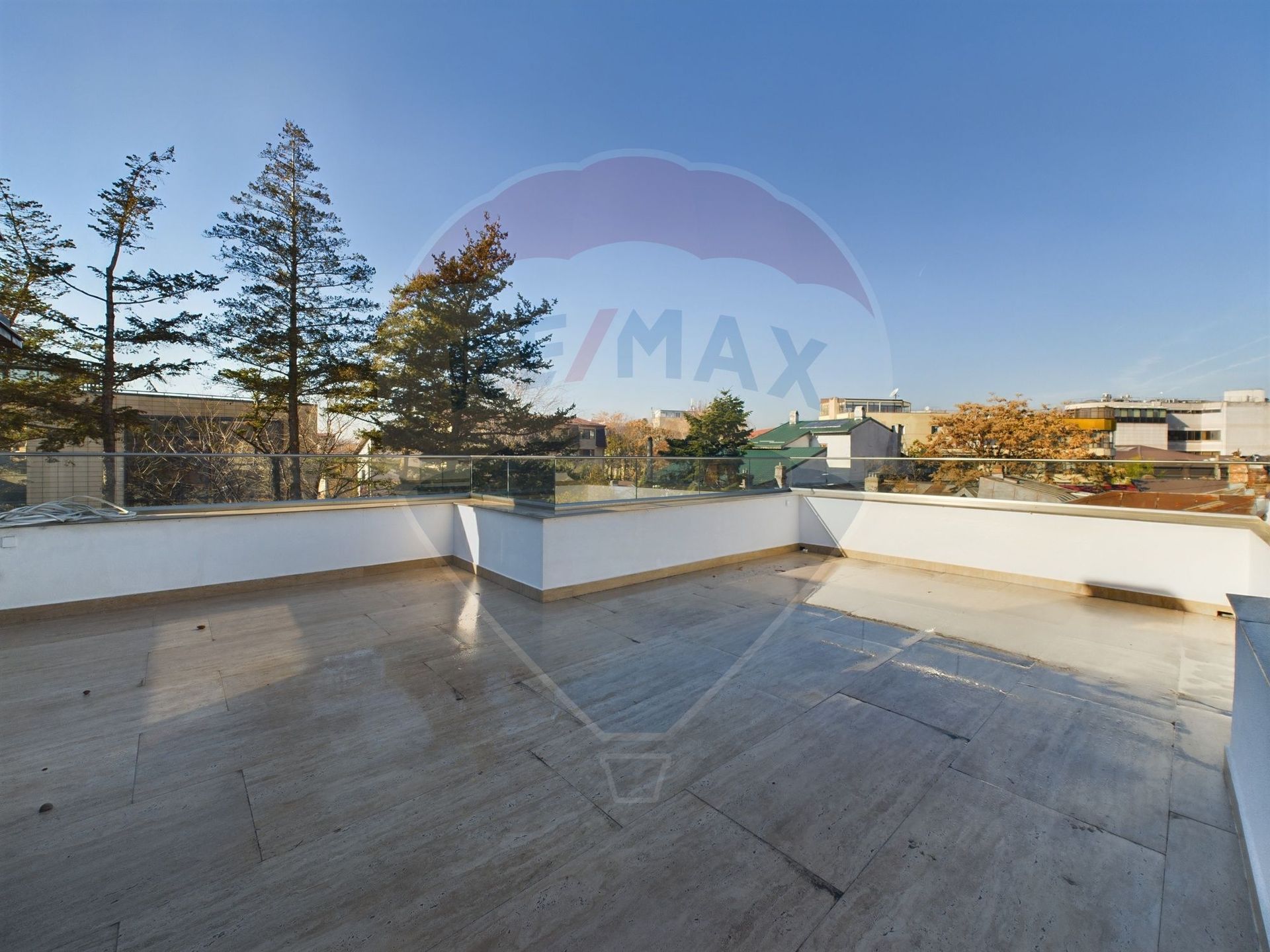La interior, finisajele sunt realizate cu materiale premium: scări placate cu marmură Carrara, balustrade din sticlă securizată pentru scări, balcon și terasă, cu mână curentă din lemn de nuc și profile din aluminiu.