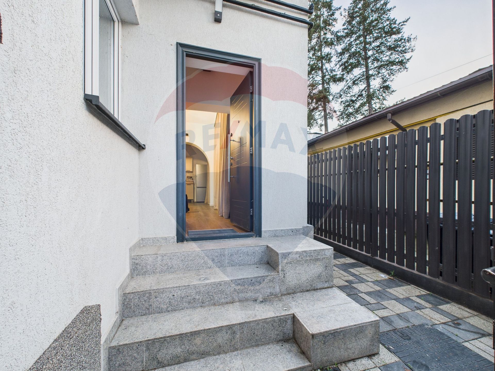 Accesul în imobil se face prin două uși metalice de intrare, cu sistem de închidere dublă. Ușile interioare sunt din lemn de fag (tip fagure), iar ferestrele sunt din PVC, cu geam termopan și rulouri din aluminiu.