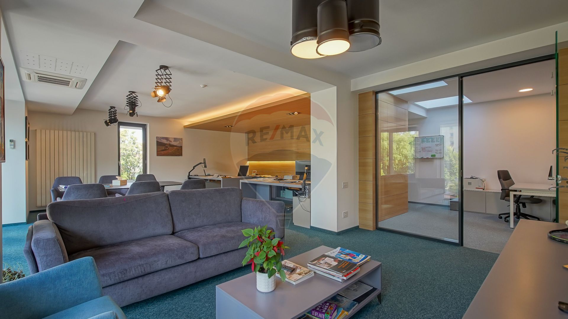 Interiorul spațiului (263 mp utili) este compartimentat inteligent și complet echipat pentru operare imediată: