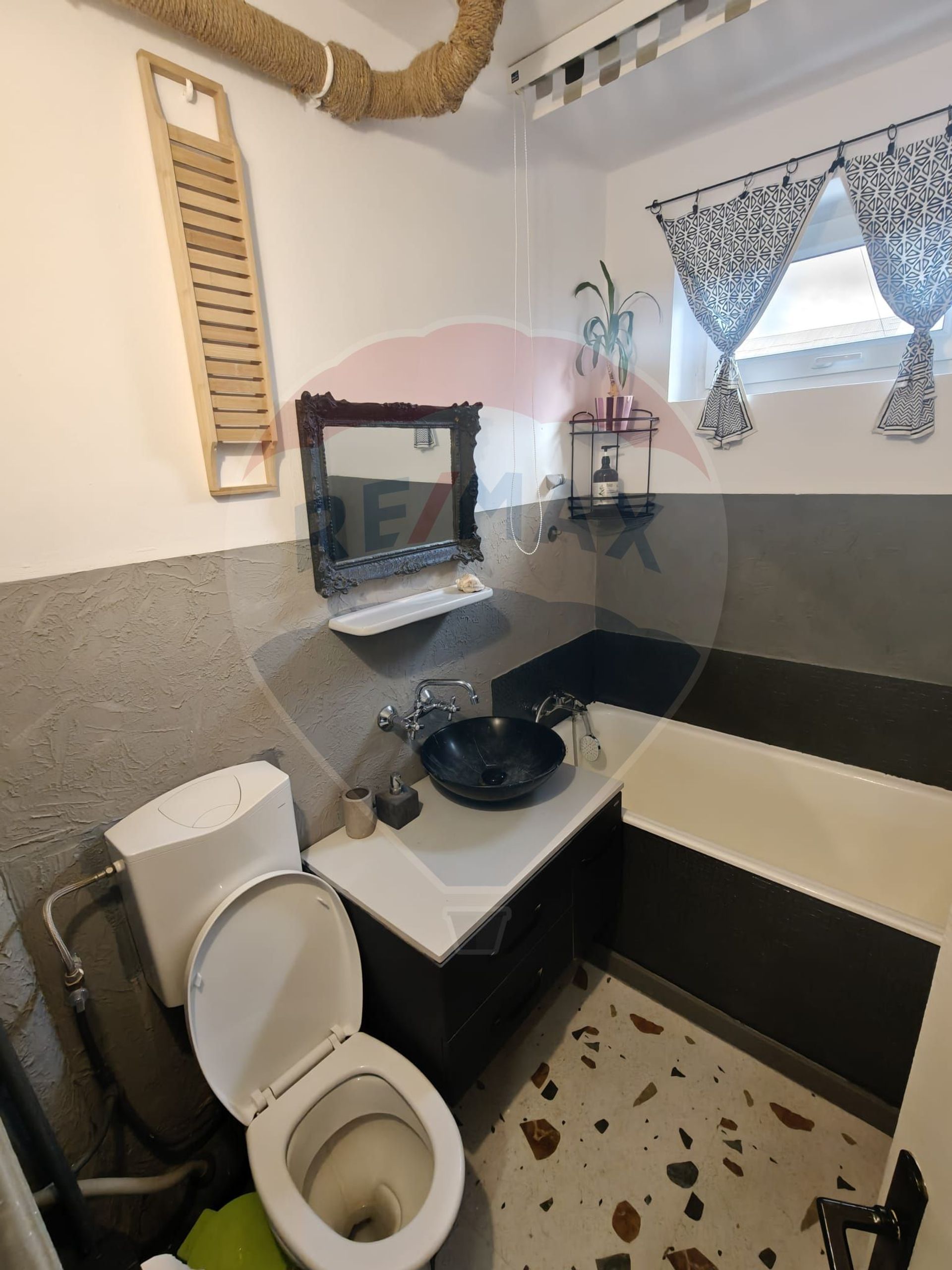 Baie cu cadă și geam pentru aerisire naturală