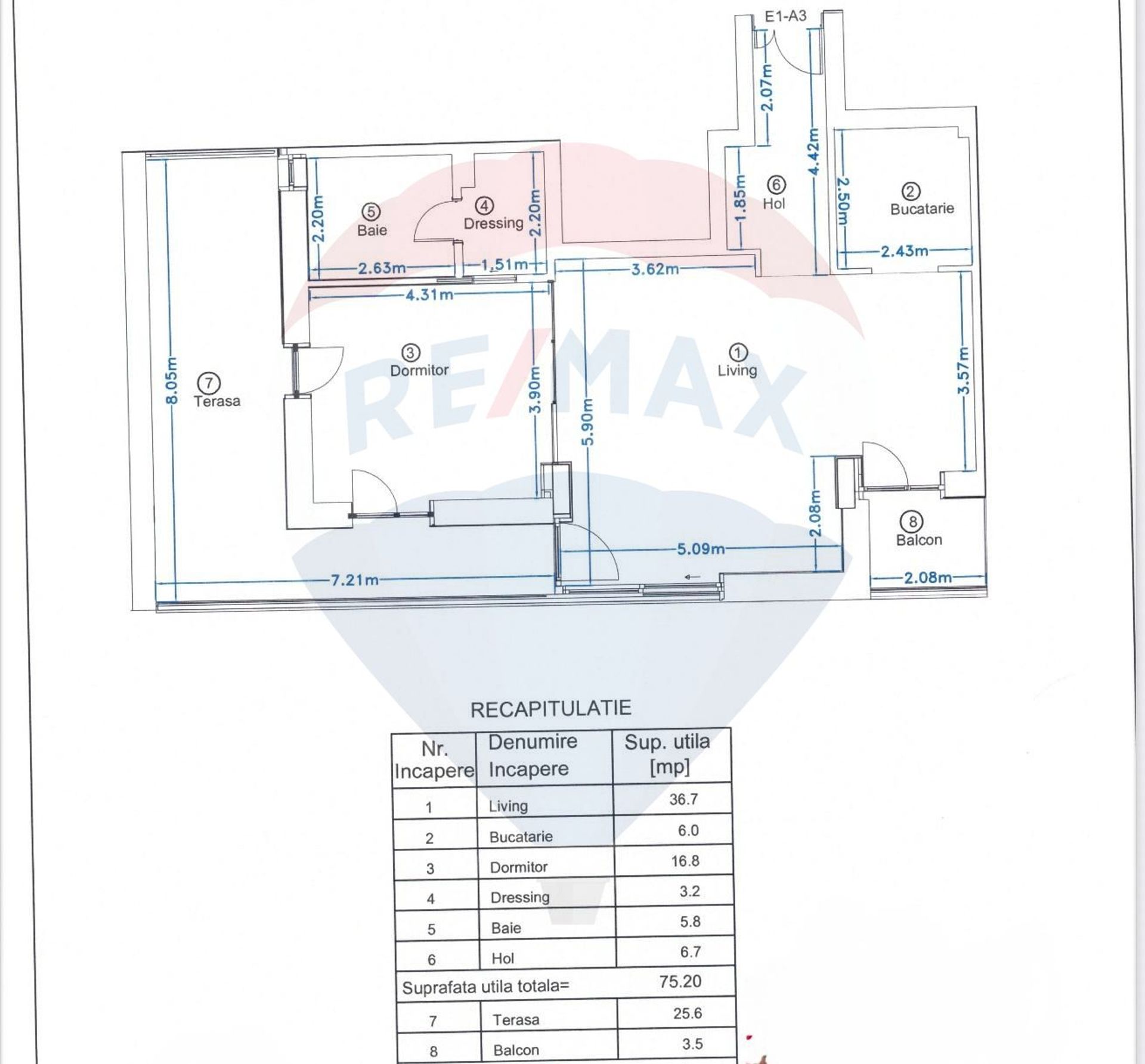 Suprafata utila este de 75 mp, completata de o terasa generoasa de 25 mp si un balcon separat de 4 mp.