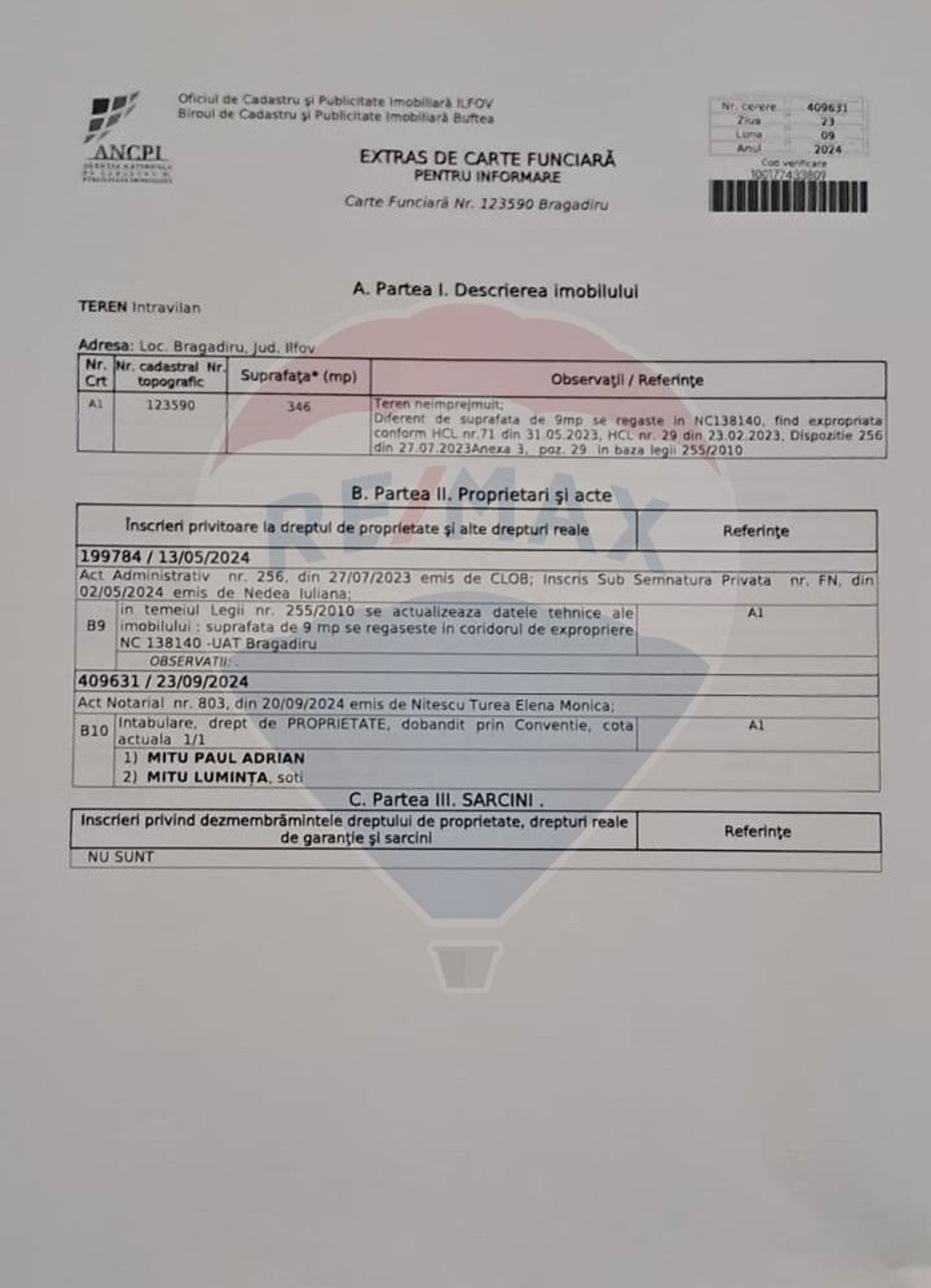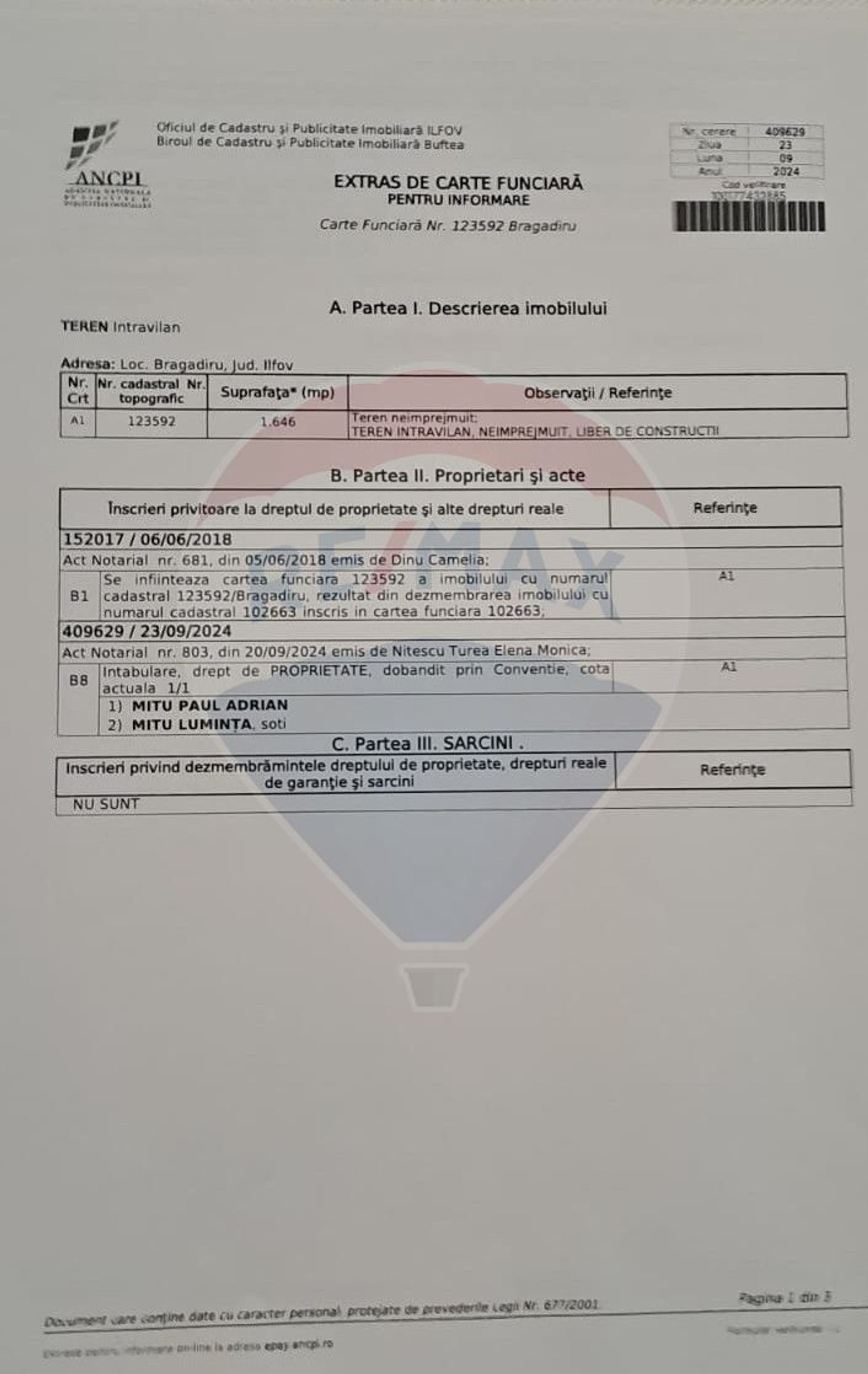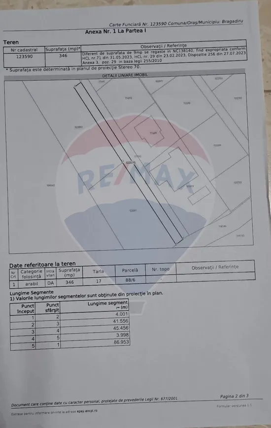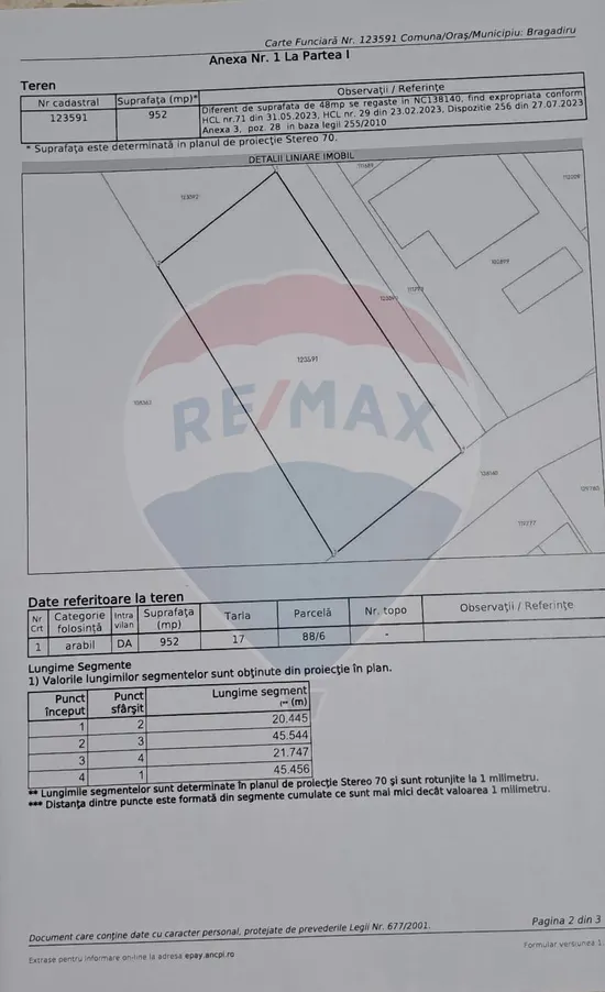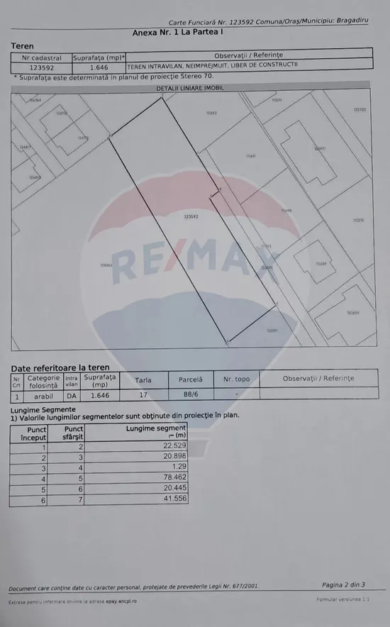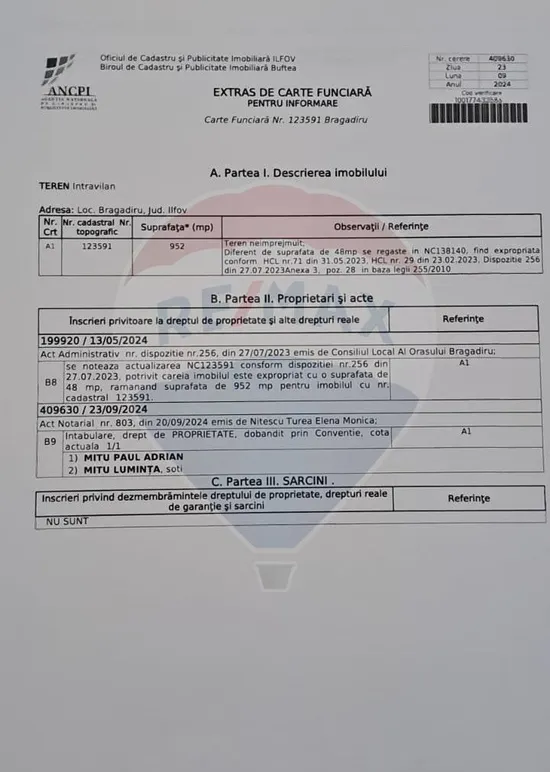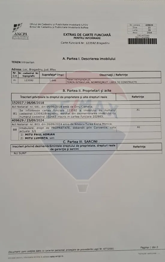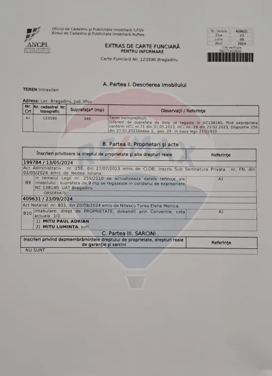 In pozele din anunt puteti gasi extrasele de carte funciara, impreuna cu schita fiecarui segment de teren.