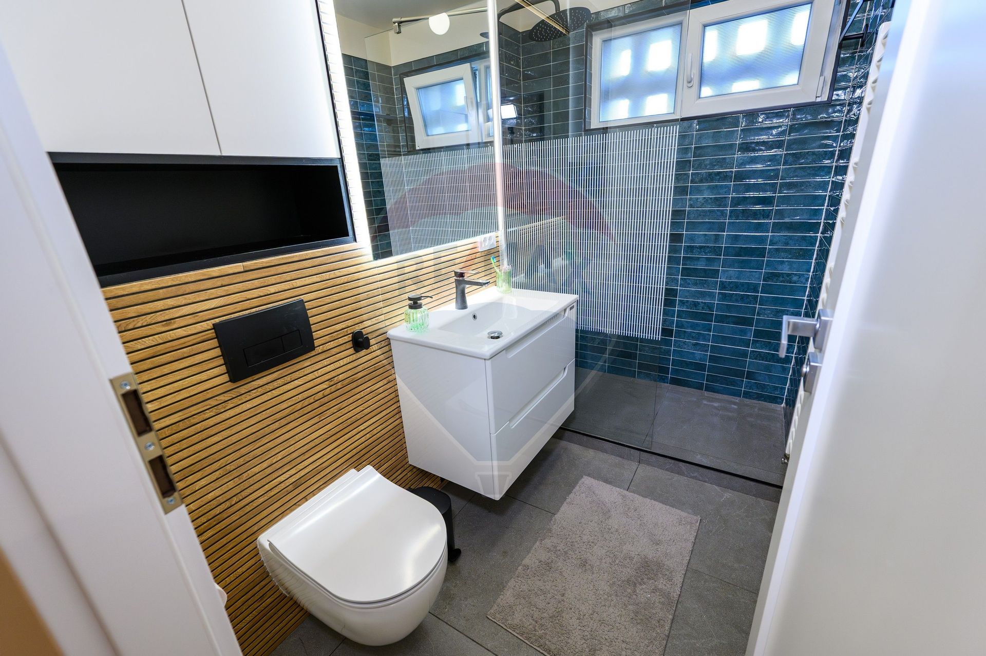 • O baie cu duș și un WC de serviciu, un plus uriaș de confort în viața de zi cu zi.