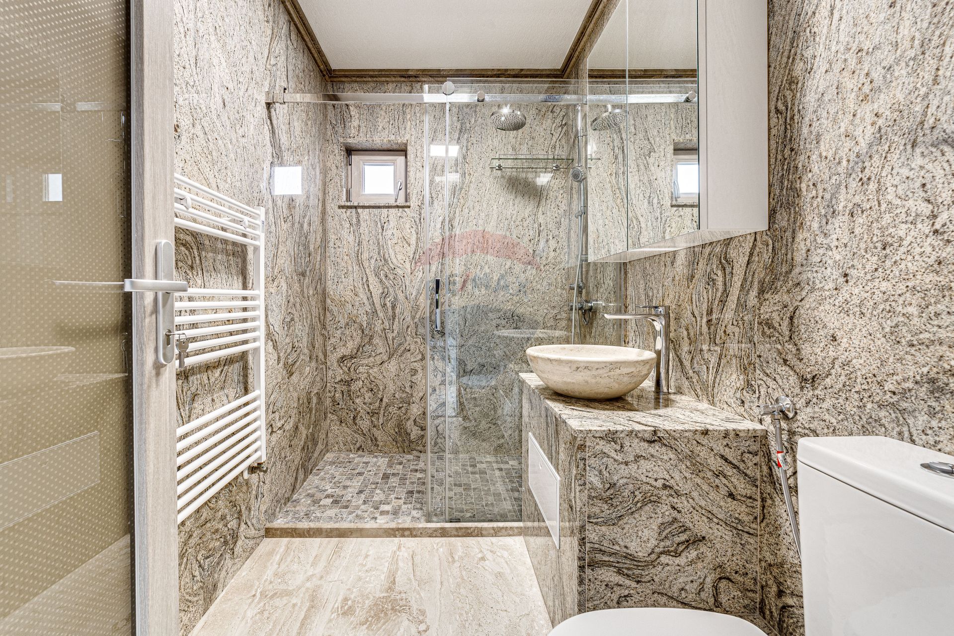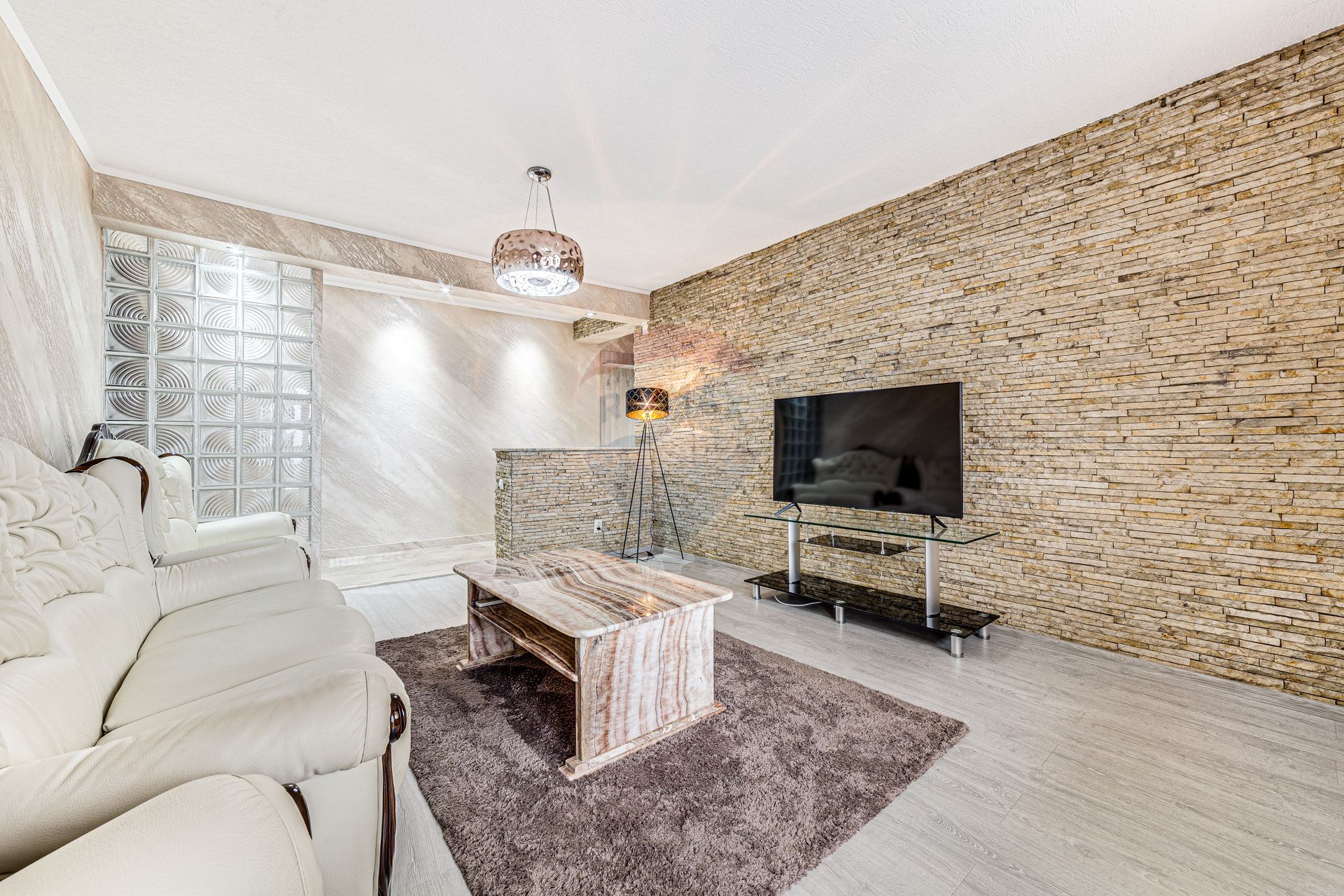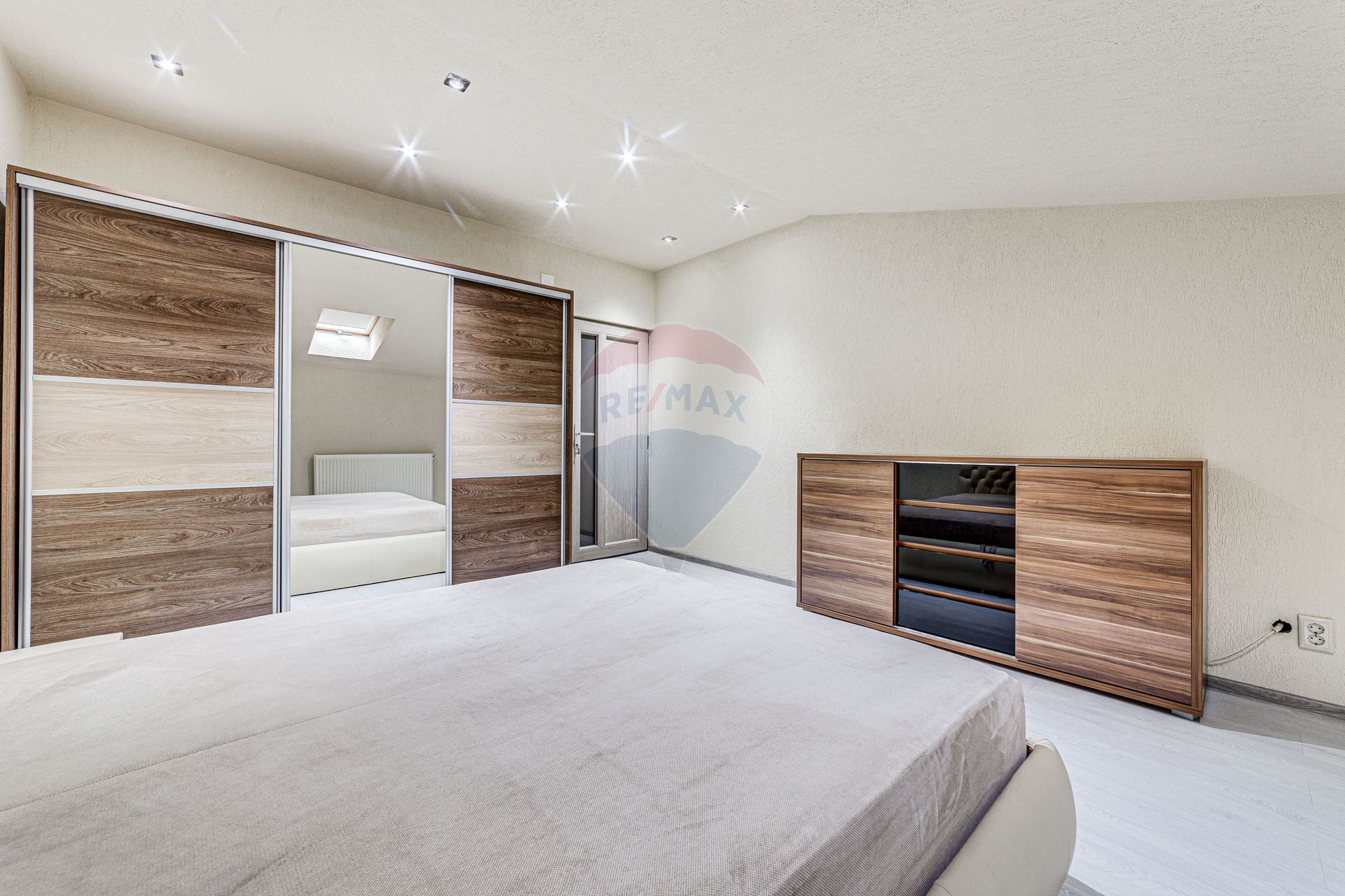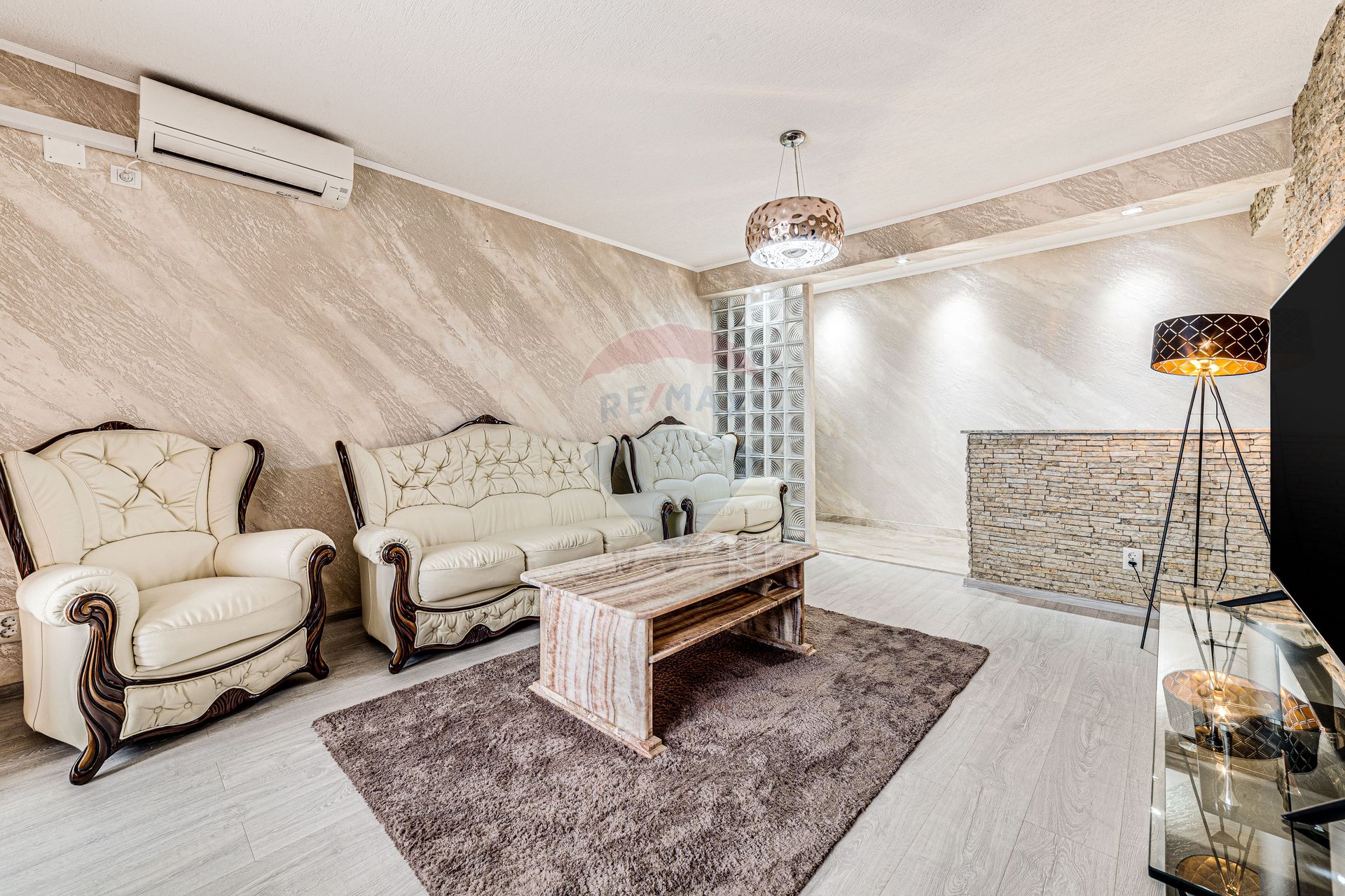 Proprietatea se diferențiază și iese în evidență prin zugrăveala de tip stucco veneziano,canapelele din piele și lemn de cireș aduse din Italia,măsuță din piatră de onix și baia este placată cu granit.