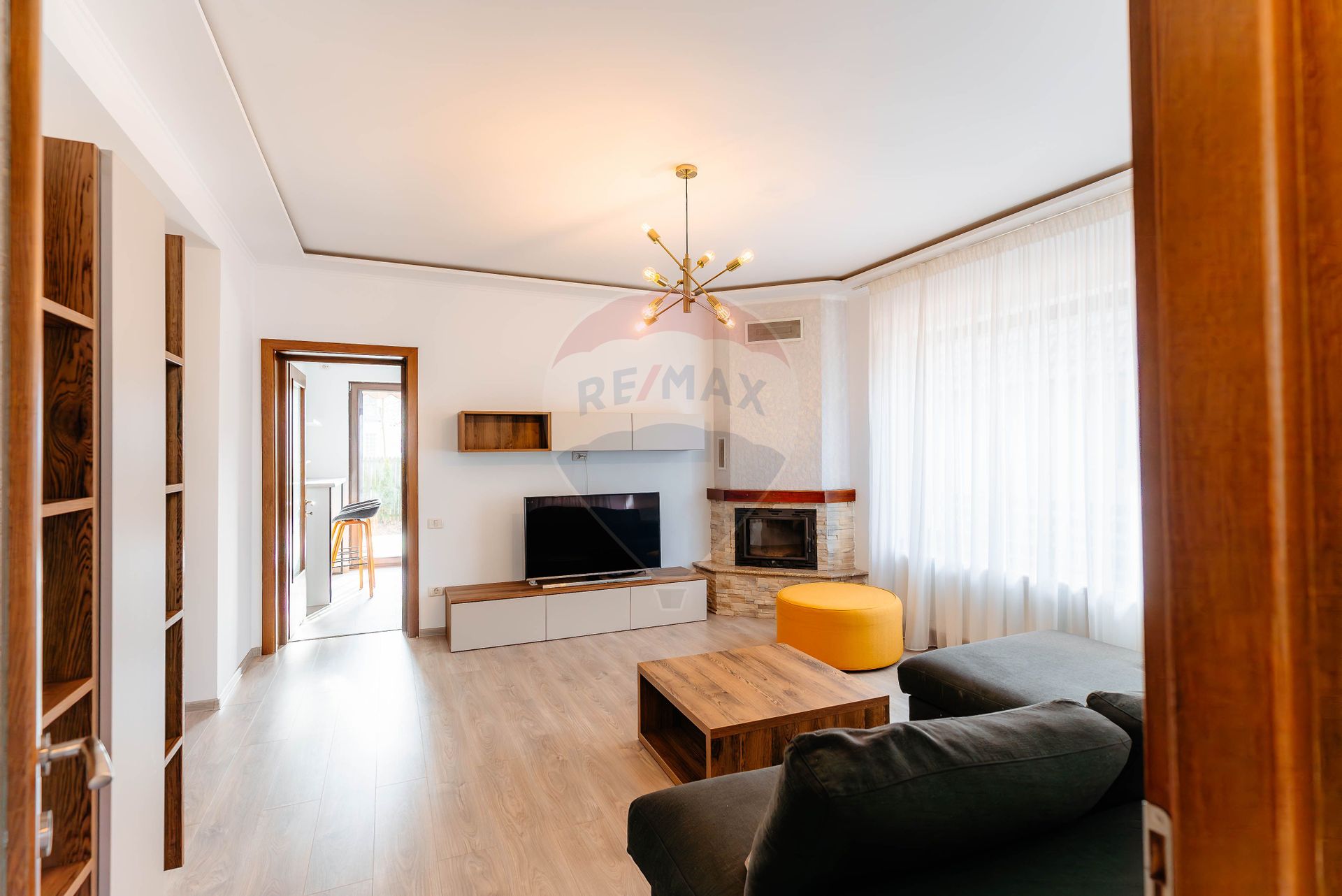 Dotări: Aer condiționat, Aragaz, Frigider, Mașină de spălat rufe, Mașină de spălat vase, Scară interioară, Șemineu, TV