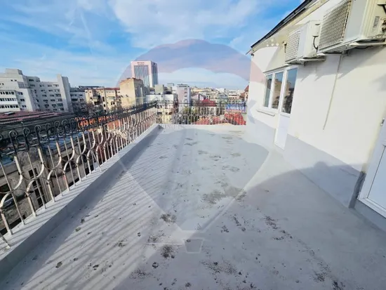 Apartamentul este situat la etajul 8 din 8 si impresionează prin: spații largi - suprafata utila de 100mp, la care se adauga si o terasă generoasă de 35 m², parchet masiv, șemineu pe lemne — un colț de relaxare rar în centrul orașului. Deasemenea are 2 bai,2 boxe si o debara, astfel ofera spatii de depozitare din belsug.