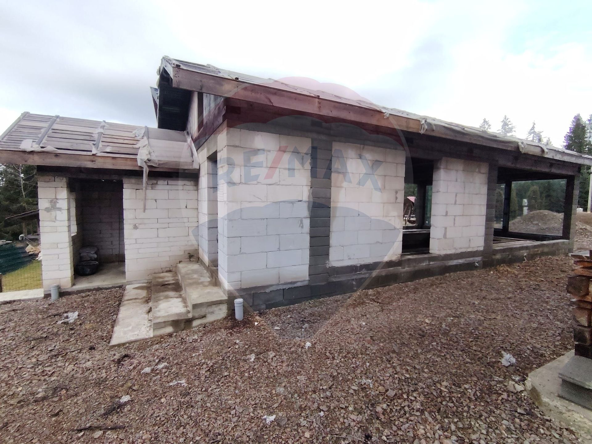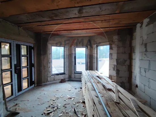 Casa: construcție nouă, an 2020, parter din BCA, etaj din lemn, stadiu semifinisată, izolată la exterior cu polistiren de 10cm.