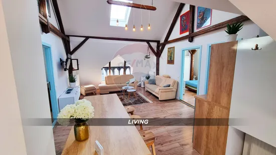 Vă propun spre închiriere un apartament deosebit complet mobilat și utilat, situat la mansarda unei case din Centrul Istoric al orașului Baia Mare. Recent renovat și amenajat într-un stil ce combină designul modern cu cel tradițional, apartamentul beneficiază de acces separat și curte.