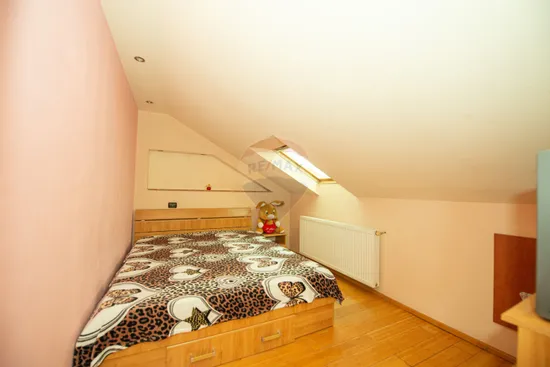 Casa impresionează prin finisaje premium și compartimentare inteligentă. Construcția beneficiază de izolație termică exterioară din polistiren expandat de 10 cm, iar la interior pereții sunt placați cu rigips verde și izolați cu vată minerală de 10–15 cm.