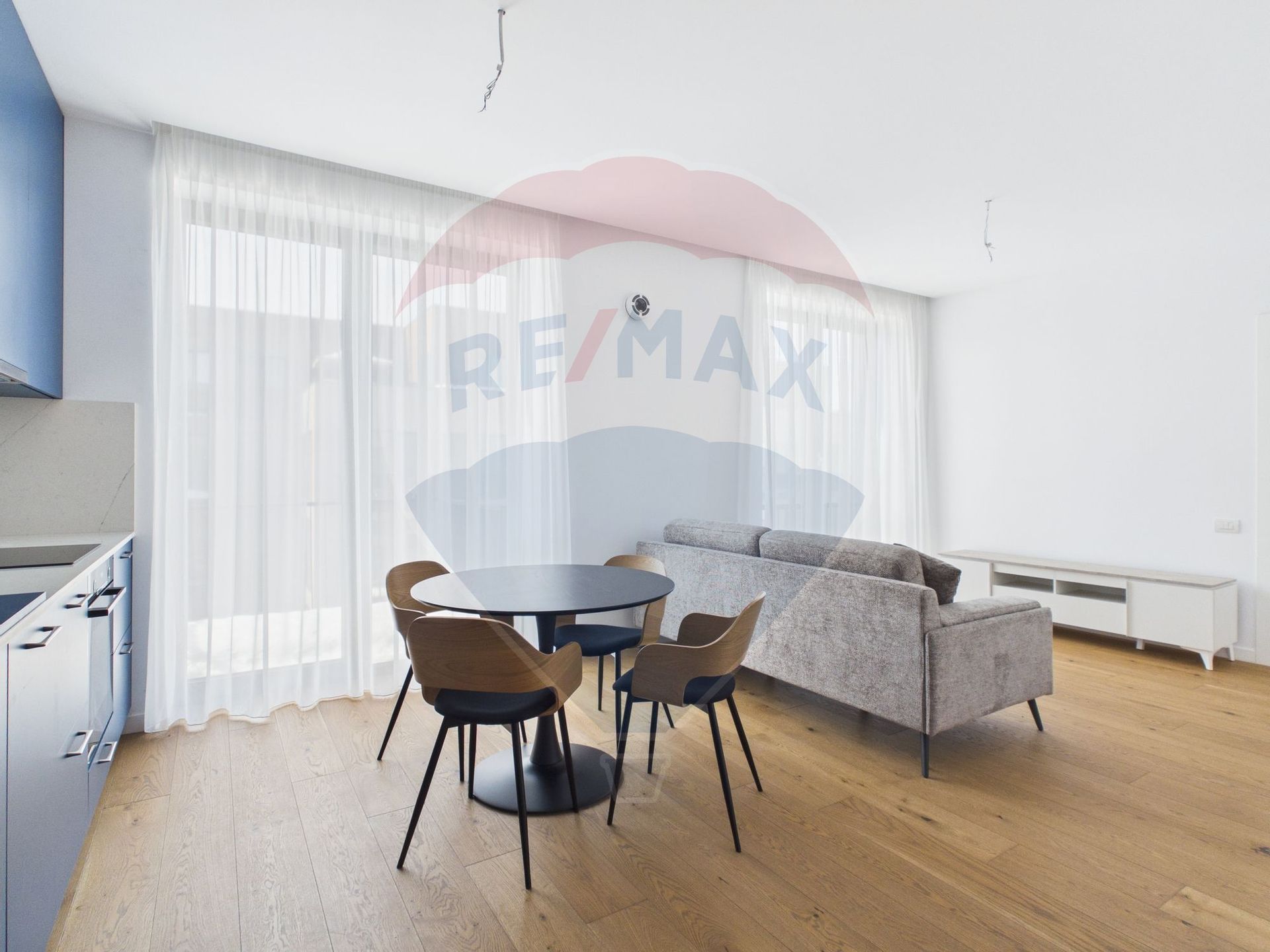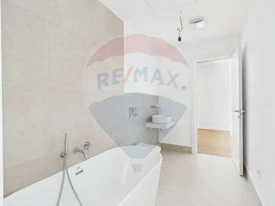 Bucataria este integral echipata cu electrocasnice Bosch, iar mobilierul realizat din MDF premium completeaza armonios un ambient modern si rafinat.