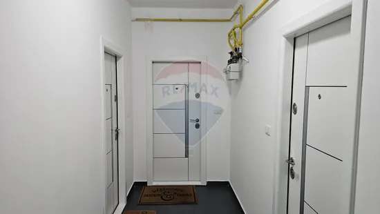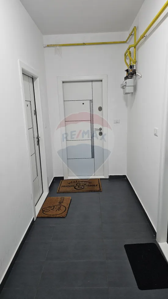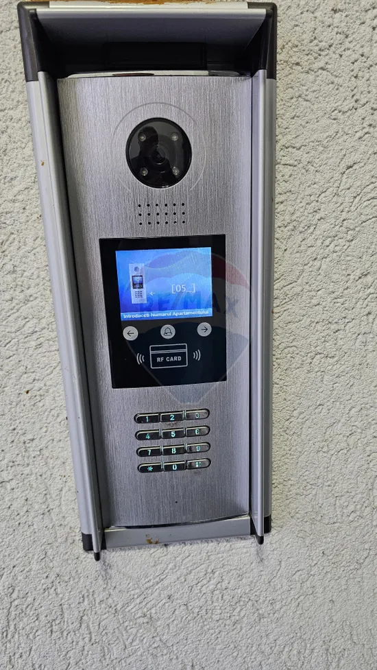 Apartamentul are ușa de la intrare din metal, tâmplăria din termopan și ușile din interior sunt din MDF.