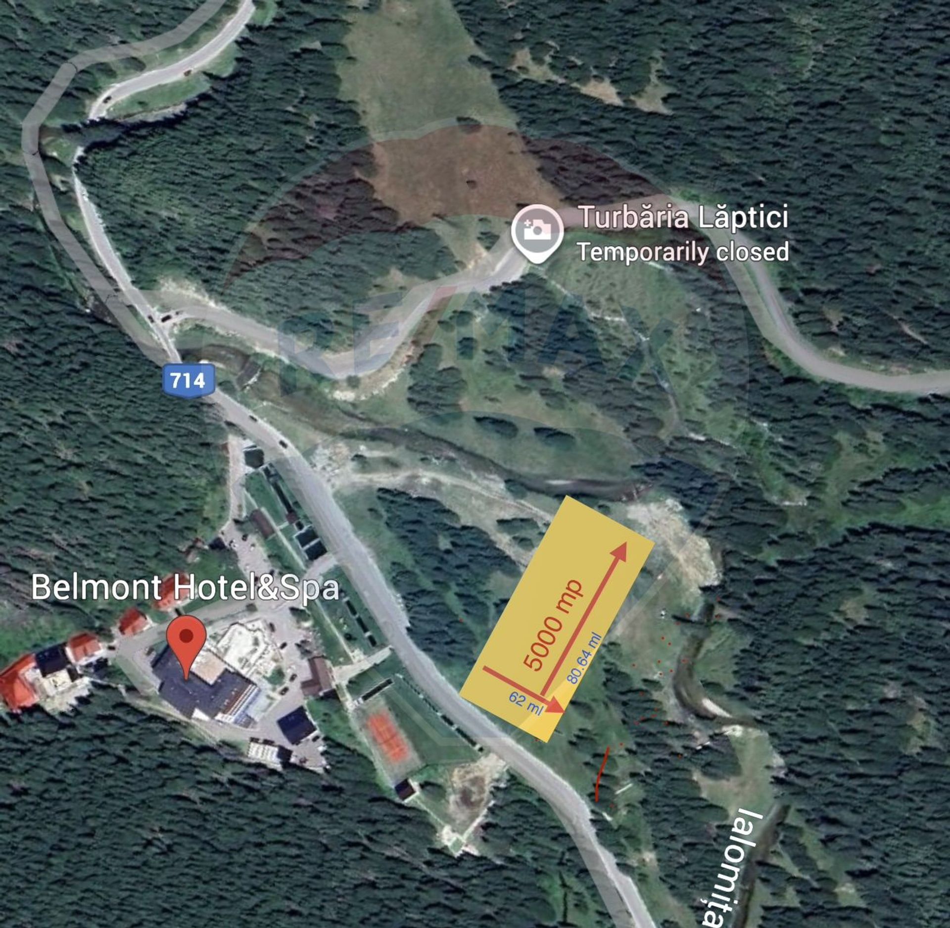 Deschidere de 62 ml la DJ714 – acces asfaltat, trafic turistic intens, vizibilitate maximă