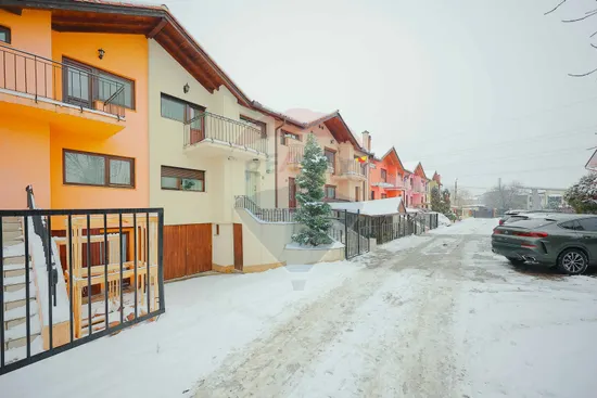 La exterior, beneficiați de o terasă mobilată, ideală pentru relaxare, și o grădină cocheta și intimă, perfectă pentru momentele petrecute în aer liber. În fața casei sunt disponibile 2 locuri de parcare proprii, un avantaj important pentru confortul zilnic sau pentru oaspeți.