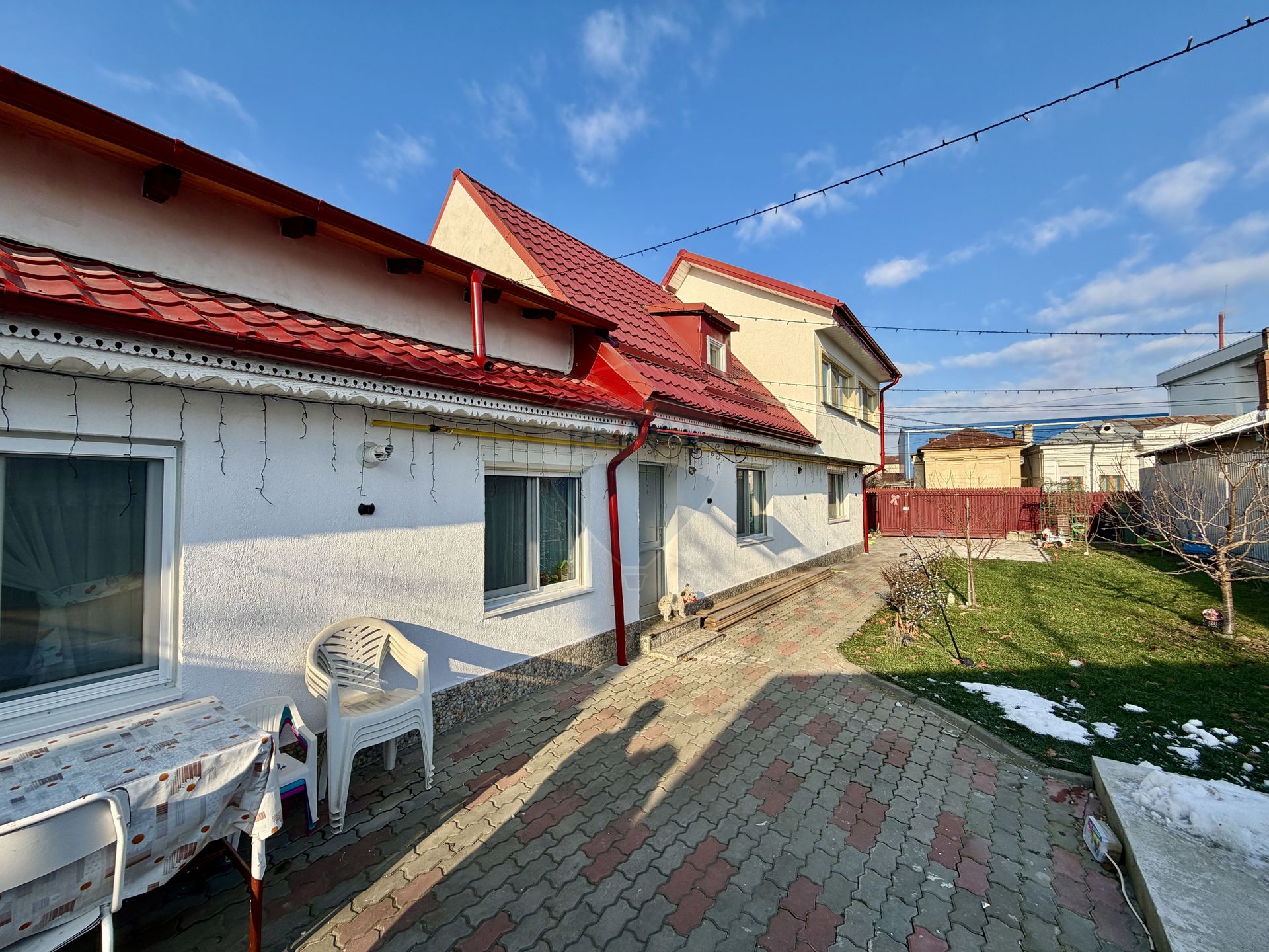 Curtea oferă suficient spațiu pentru grădină, zonă de relaxare sau parcare.