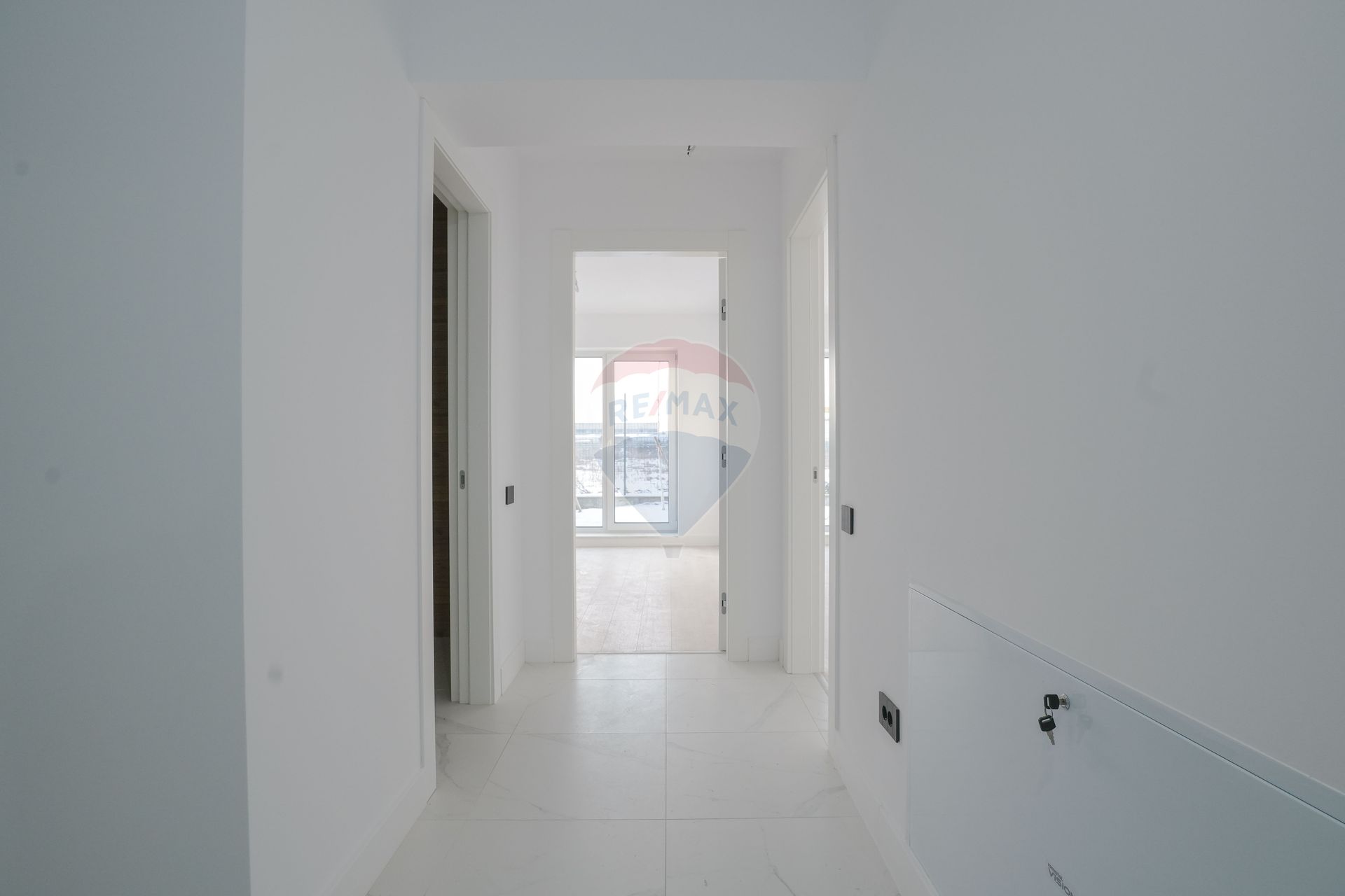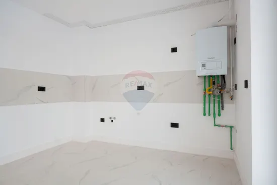 Apartamentul vine „la alb”, oferindu-ți libertatea de a-ți personaliza fiecare detaliu după propriul stil. Tehnologiile moderne — centrala proprie, încălzirea în pardoseală, videointerfonul și cele două unități de aer condiționat — garantează confortul termic și eficiența energetică în orice sezon.