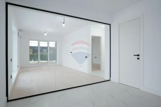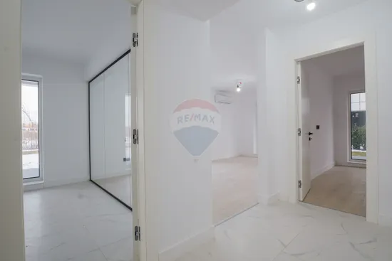 Situat într-un bloc nou, finalizat în 2024, apartamentul îmbină eleganța designului modern cu siguranța unei construcții din caramida. Ai 95,3 mp utili, o terasă generoasă de 26,5 mp și acces din toate camerele către curtea care înconjoară proprietatea — un detaliu rar chiar și pentru zona aceasta aflată în plină dezvoltare.