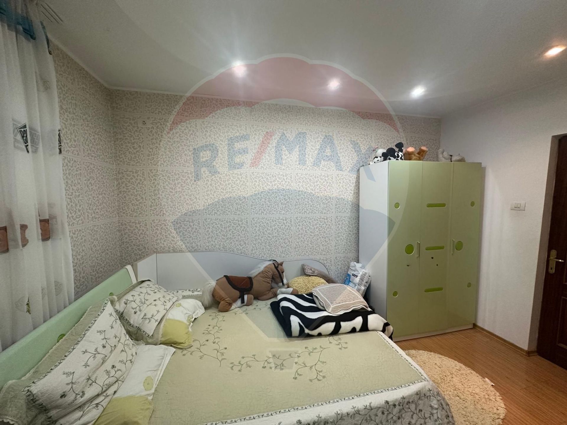 Proprietatea dispune de 5 dormitoare luminoase, potrivite atât pentru o familie numeroasă, cât și pentru amenajarea unui birou sau a unei camere de oaspeți. Zona de zi este generoasă și modernă.