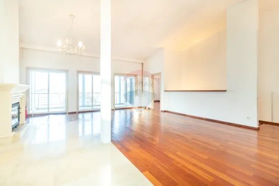 În livingul imens, un șemineu pe lemne adaugă un plus de confort și atmosferă, oferind un cadru primitor și călduros în serile răcoroase. Acest detaliu transformă spațiul de zi într-un loc ideal pentru relaxare și socializare.