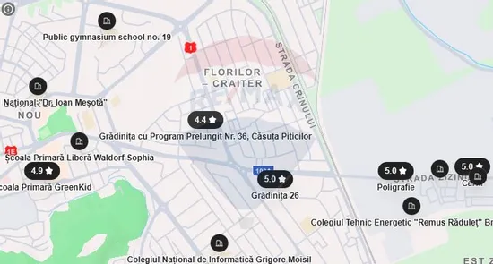-Scoli primare, gimnaziale si licee in raza de aproximativ 10–15 minute