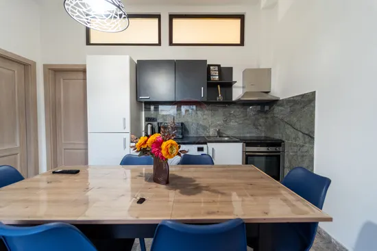 Bucataria are dubla functionalitate, motiv pentru care se poate folosi si ca living.
