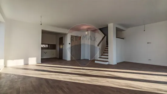 Fotografiile cu interiorul sunt cu titlu de prezentare și ilustrează o posibilă variantă de amenajare. Vila se vinde în stadiu nefinisat, oferindu-ți libertatea de a o personaliza integral după propriul gust. La cerere, proprietatea poate fi livrată și finisată, conform unui proiect de amenajare agreat împreună, cu buget și materiale adaptate preferințelor tale.