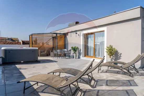 Elementul care transformă această proprietate într-una cu adevărat specială este terasa impresionantă, de aproximativ 200 mp — un spațiu exterior rar întâlnit, amenajat ca zonă de relaxare, perfect pentru petrecerea timpului liber, seri cu prietenii sau momente de liniște. Terasa este completată de un jacuzzi electric, care oferă un plus de confort și exclusivitate.