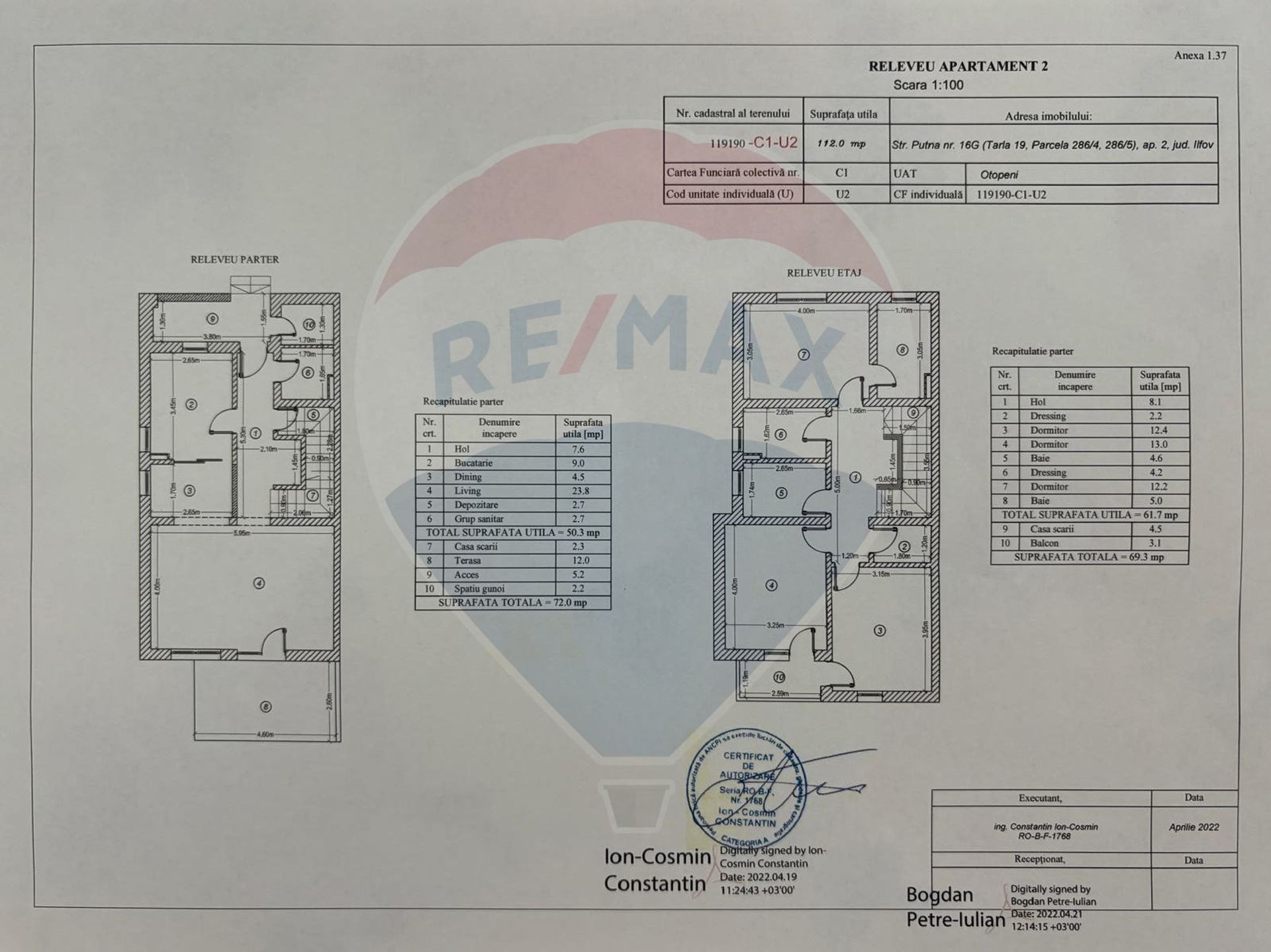 Suprafata utila parter + et. 1 = 112 mp