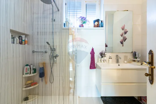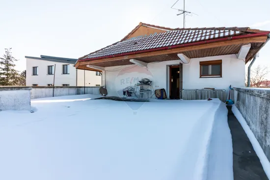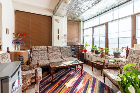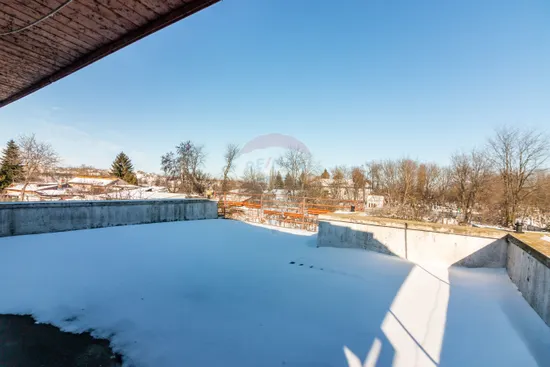Terasa generoasă de 54 mp, cu balustradă zidită și hidroizolație foarte bună, este potrivită pentru joacă, relaxare sau mese în aer liber, într-un spațiu sigur pentru copii.