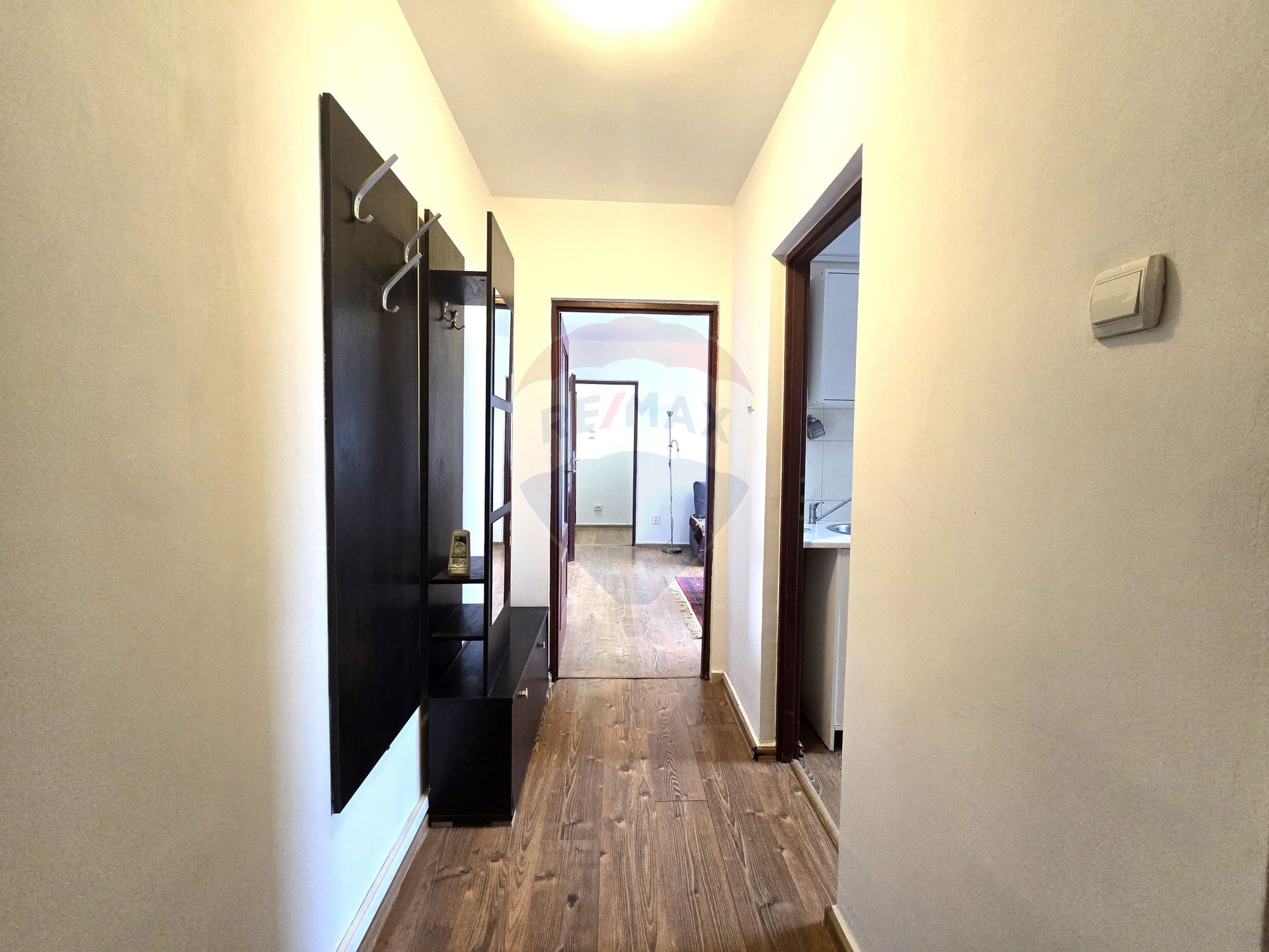 - Trei camere, baie, bucatarie, debara, balcon, 2 holuri;