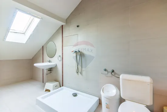 -etaj 1: hol de acces, living generos, baie si doua dormitoare, fiecare cu baie proprie. Terasa de 12 mp.