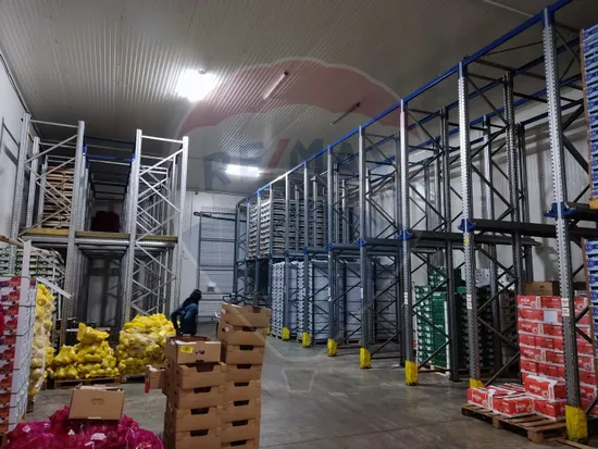 Depozit 1 in suprafata de 3275 mp din care aproximativ 200 mp birouri. Depozitul beneficiaza de temperatura controlata, rafturi si este ideal pentru activitatile de depozitare si ambalare legume fructe fiind special compartimentat pentru aceasta activitate. Depozitul dispune de 4 rampe cu burduf pentru autocamioane si o usa de acces pentru autoutilitare.