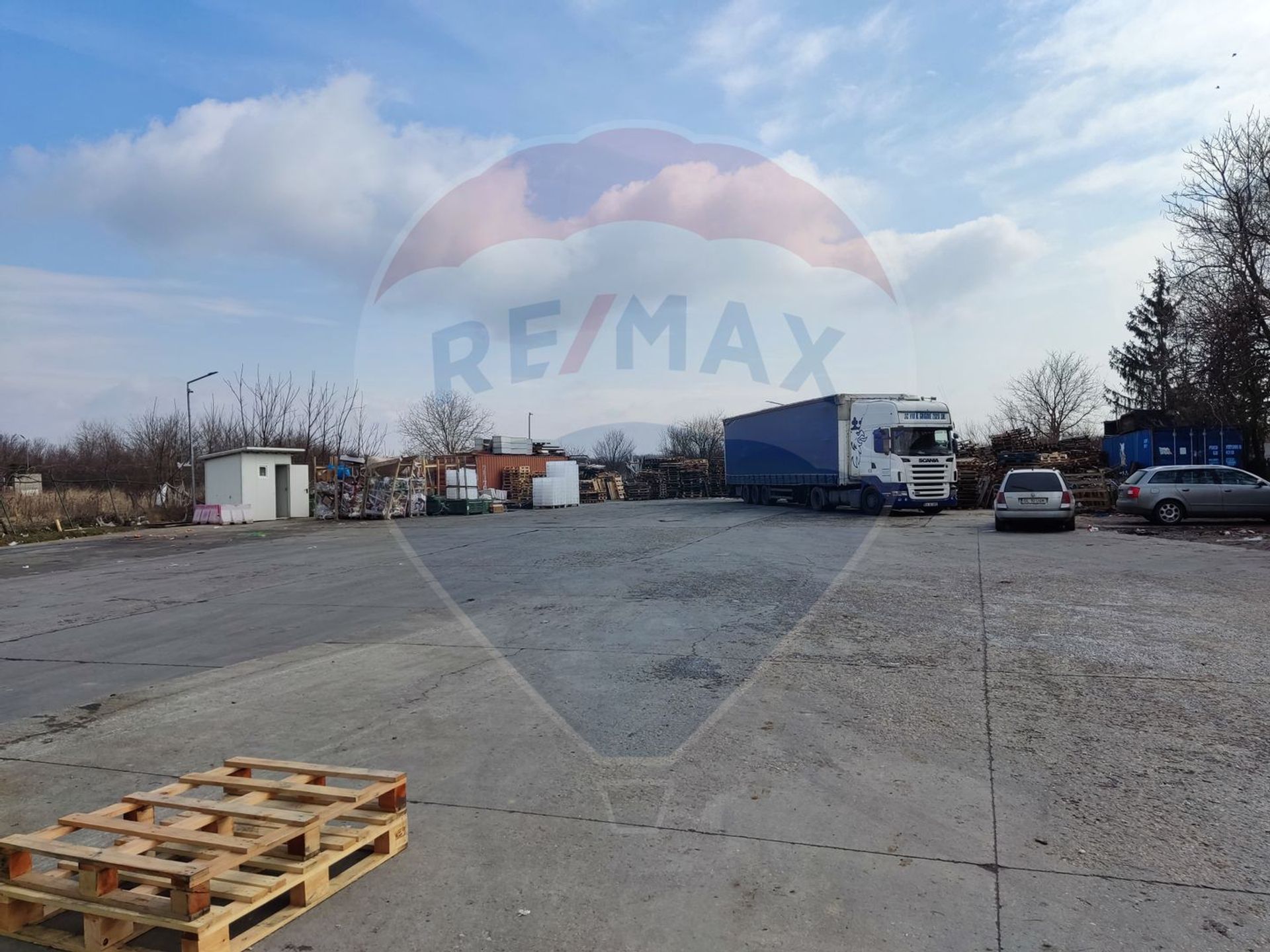 Terenul total al proprietatii este de 12500 mp si este bine sistematizat cu cai de acces cu bariere, sensuri unice si plaforme betonate, parcari pentru angajati si autocamioane.