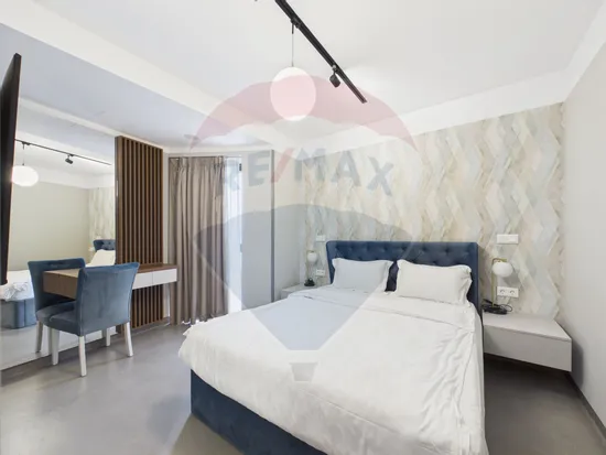 - In dormitor exista un dressing bine organizat pentru haine si accesorii si un Smart TV.