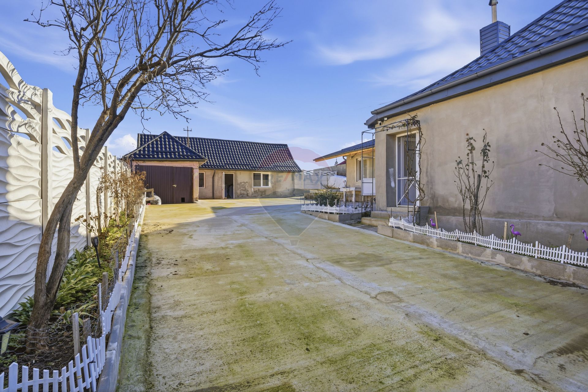 Curtea din față este betonată, facilitând accesul și întreținerea ușoară, iar în partea din spate se regăsește o grădină generoasă, ideală pentru relaxare, grădinărit sau amenajarea unui spațiu verde personalizat.