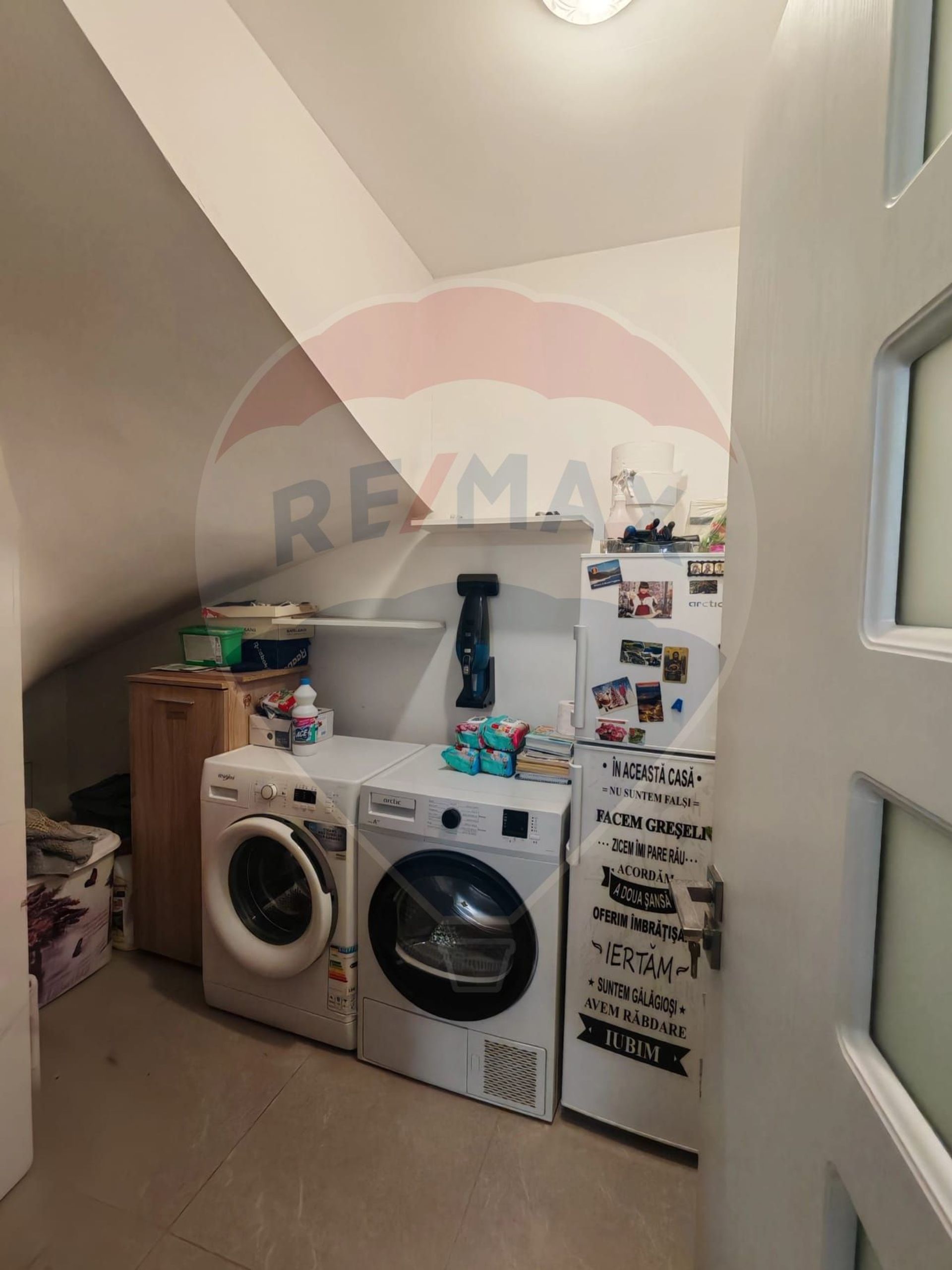 Dotări: Aragaz, Frigider, Mașină de spălat rufe, Mașină de spălat vase, Scară interioară