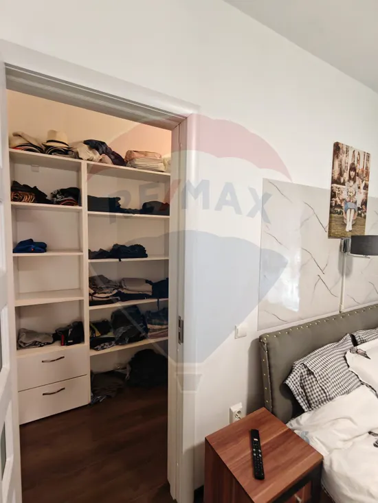 - Debara spațioasă, prevăzută cu rafturi și mașină de spălat