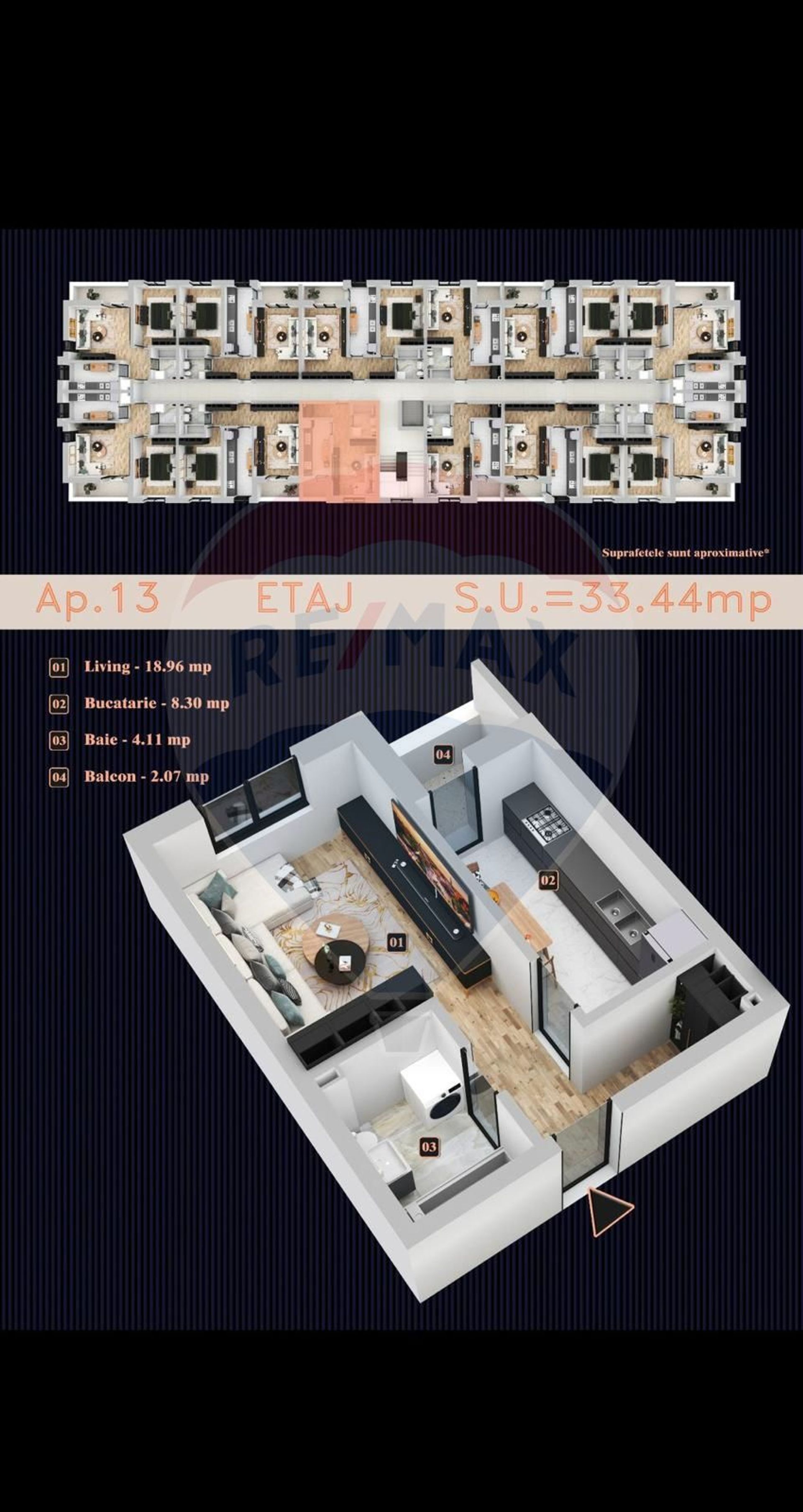 -Suprafațe: 33,44 mp – 54,93 mp