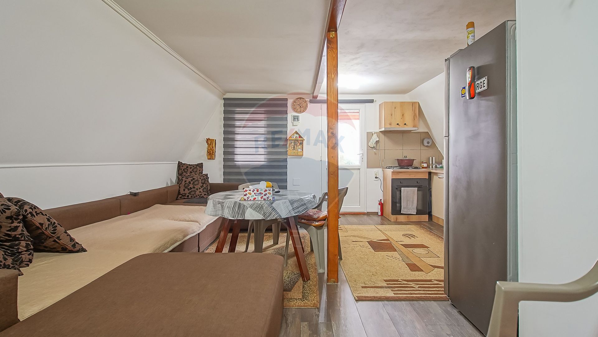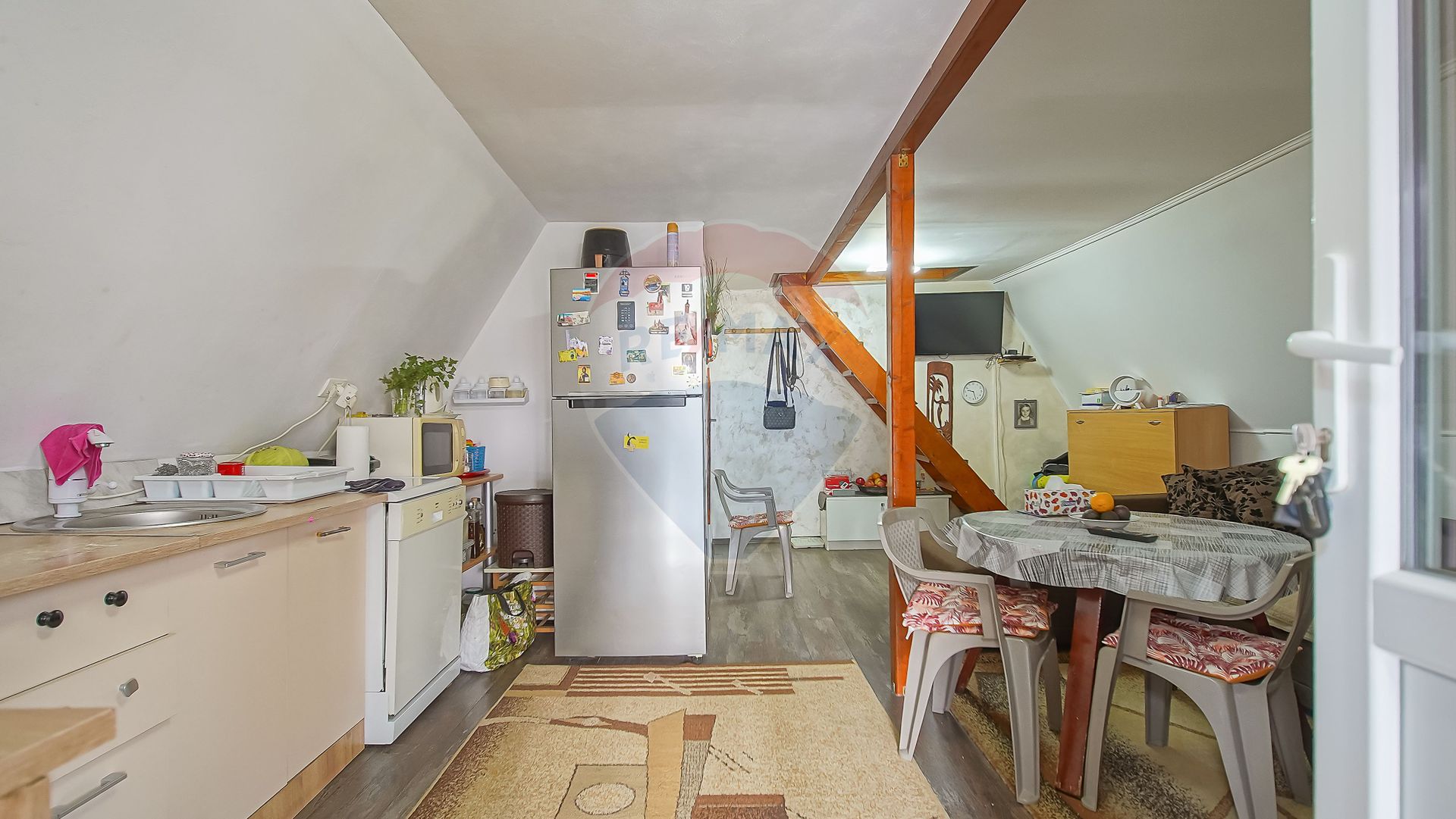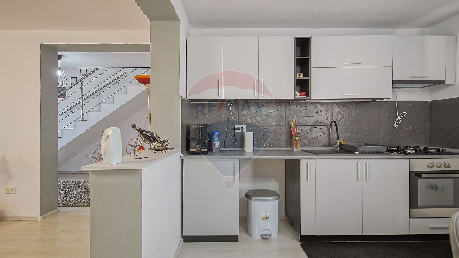 Dotări: Aragaz, Frigider, Mașină de spălat rufe, Scară interioară