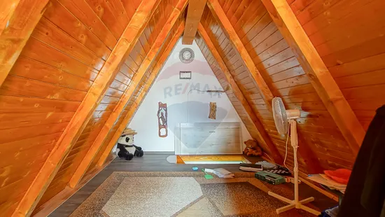 Cabana A Frame este o constructie nouă, complet utilată, cu amprentă la sol: 5,5 × 7,5 m si dispune de utilitati: curent, apă, fibră optică, canalizare prin fosa septica
