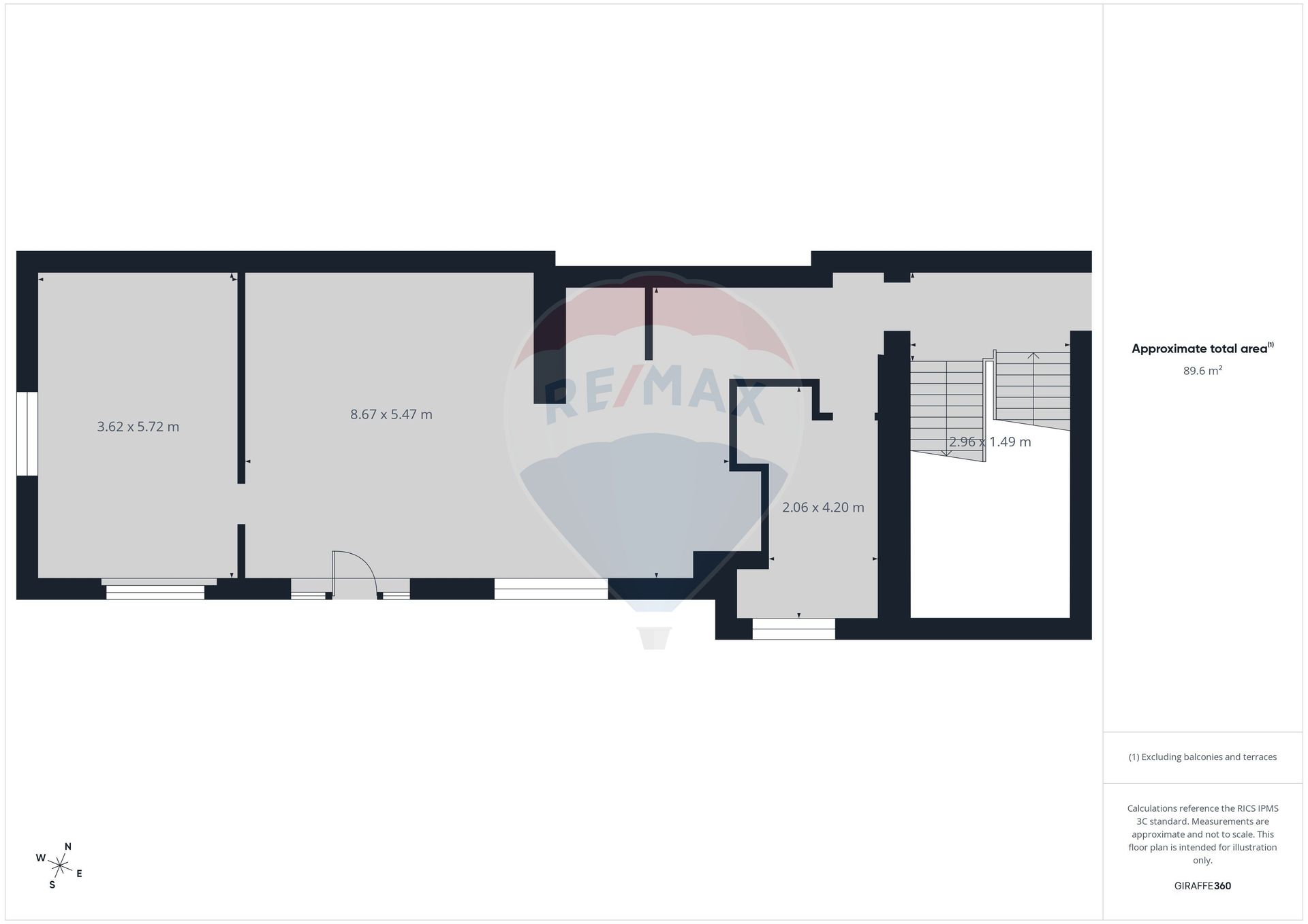 Suprafața de 89,6 mp este eficient compartimentată și oferă un cadru ideal pentru desfășurarea activităților profesionale: