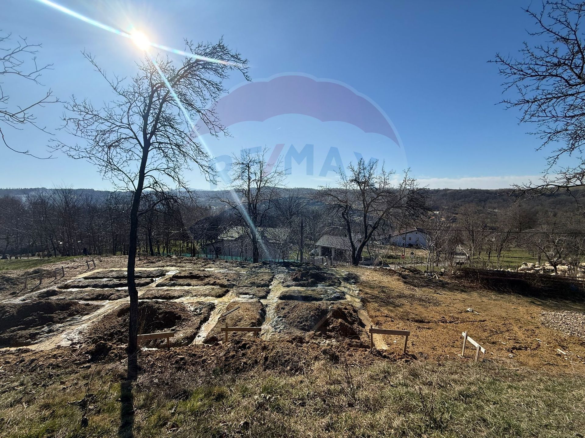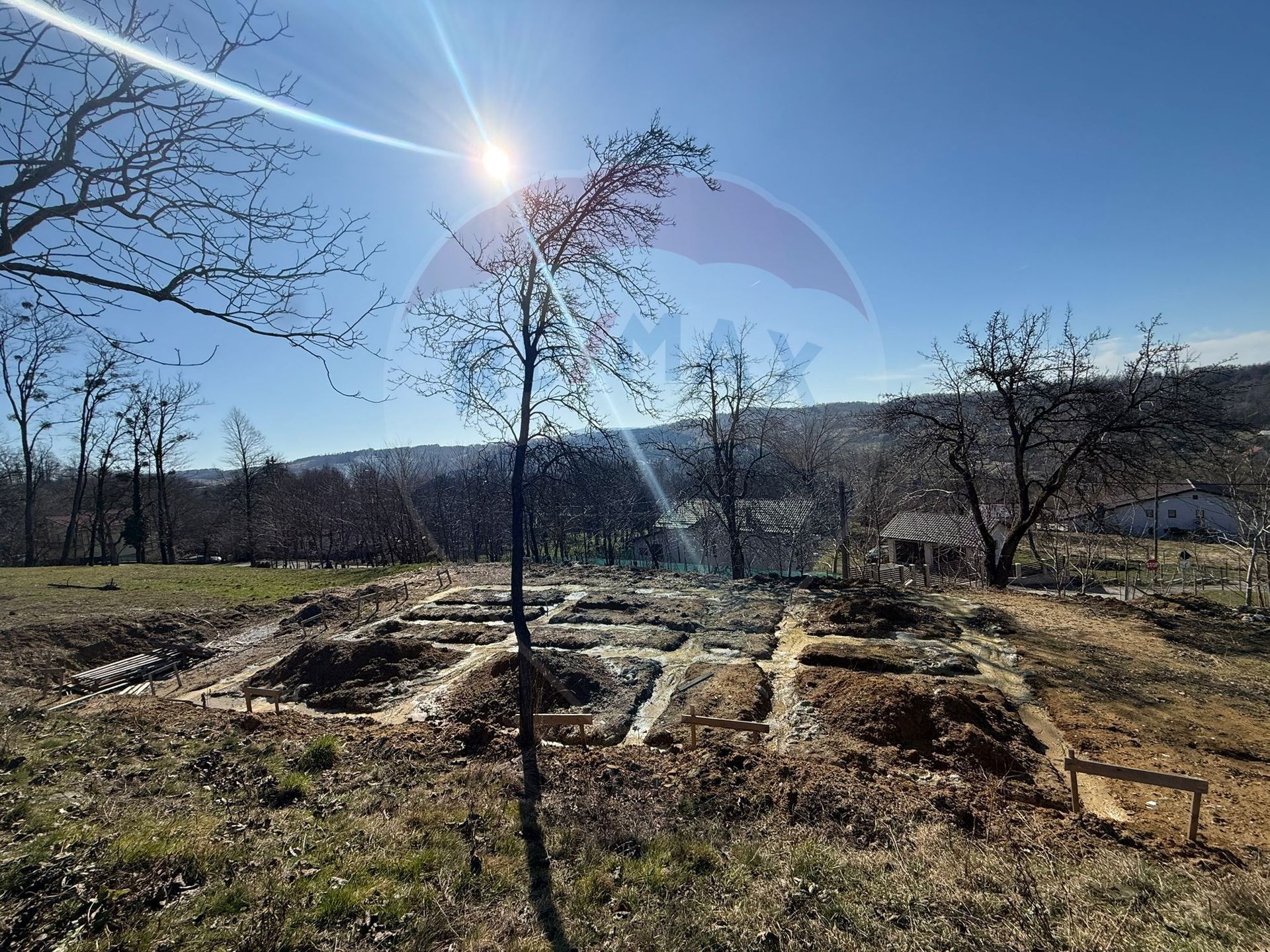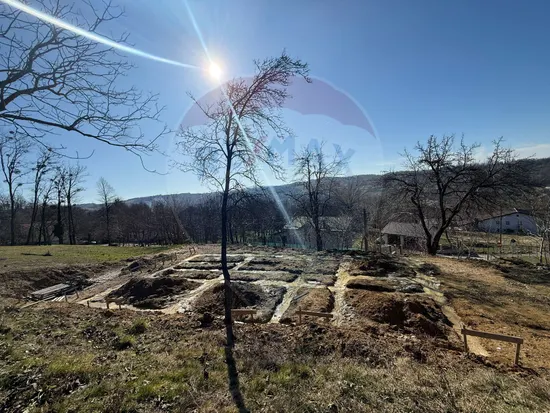 -Teren de vanzare în Carbunari cu fundație de beton, proiect de casa si racorduri de utilitati.