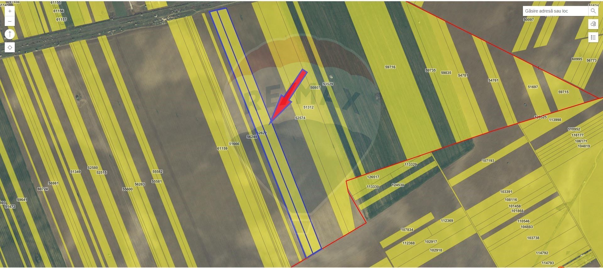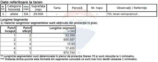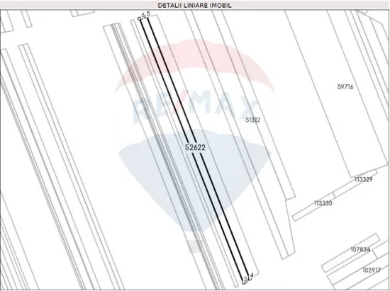 Terenul este compus din două extrase de carte funciara si are o suprafată totală de 49666 mp cu deschiderea de 57 m.