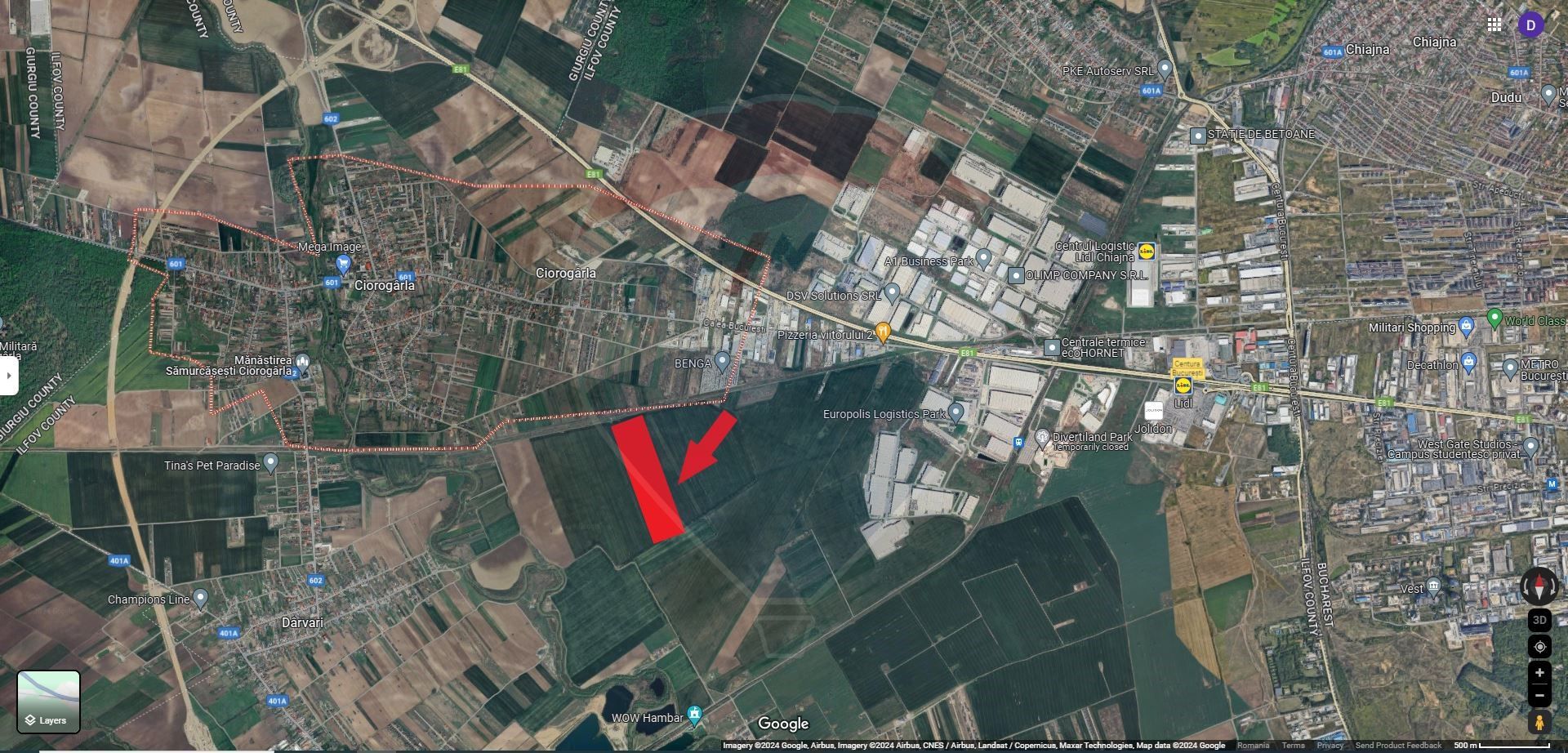 Va prezentam spre vanzare un teren intravilan cu potențial deosebit situat în localitatea Ciorogarla-judetul Ilfov.
