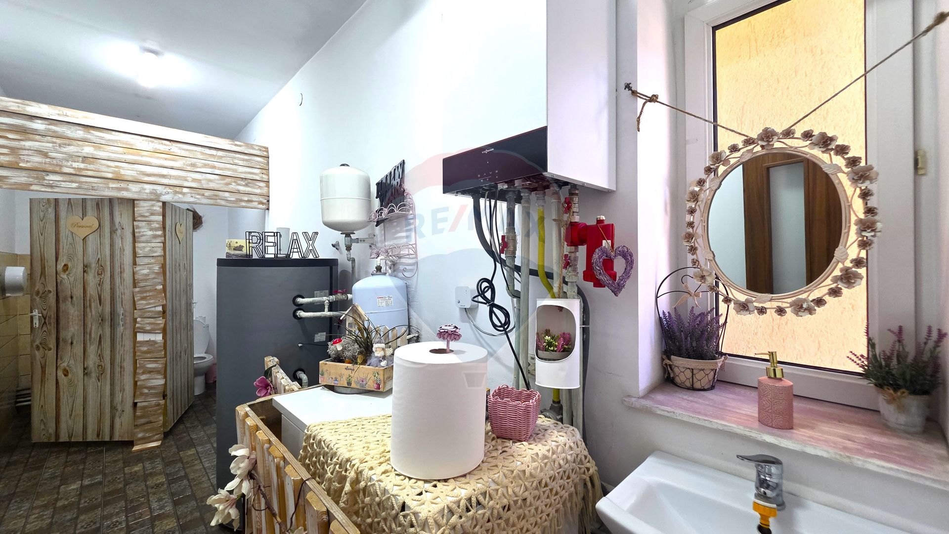 Facilitățile includ accesul la grupuri sanitare amenajate, folosind singurul regim comun cu un alt chiriaș din curte. Această configurație eficientizează costurile de întreținere, păstrând în același timp standardele de igienă necesare pentru un cabinet sau birou.