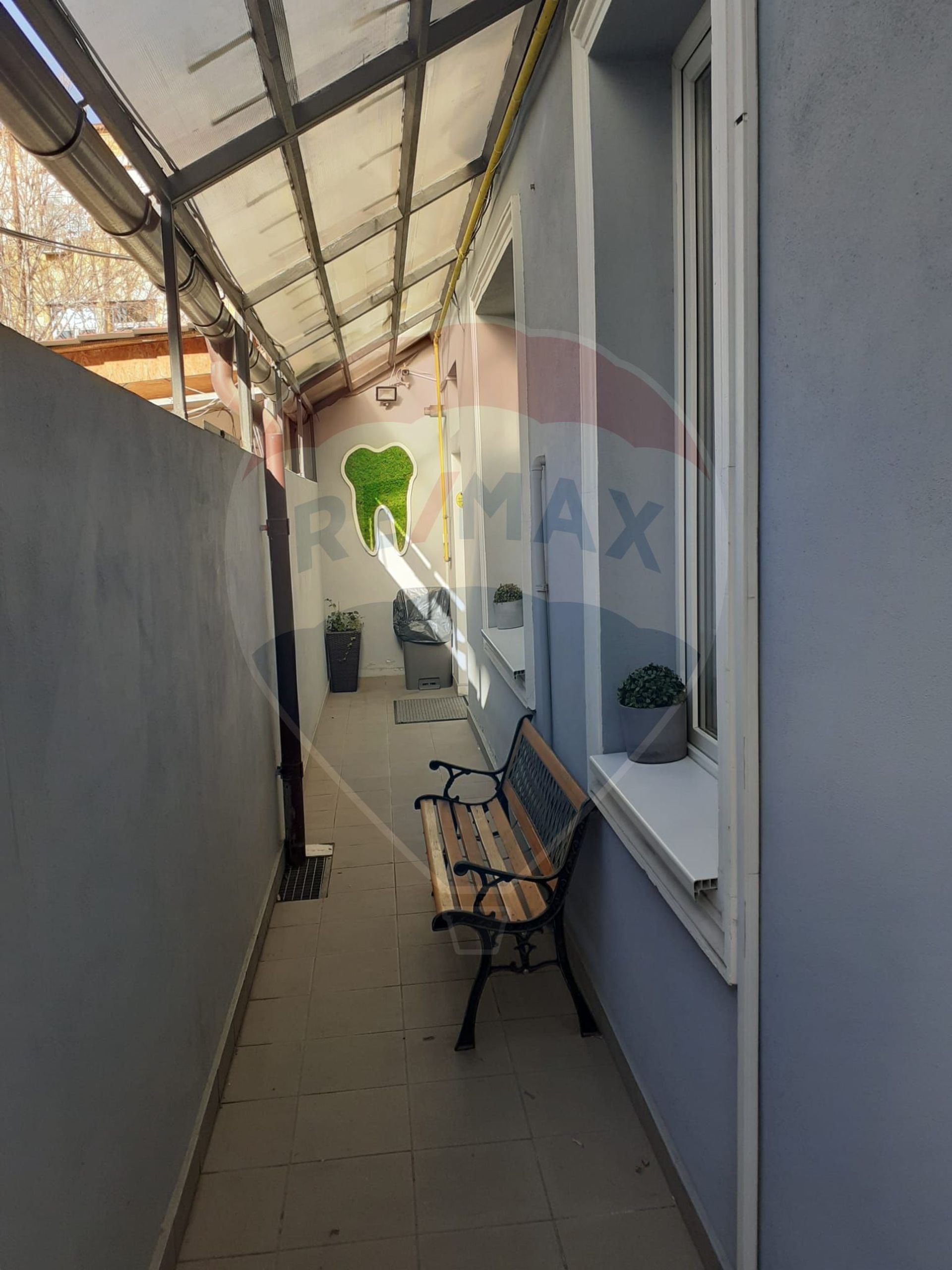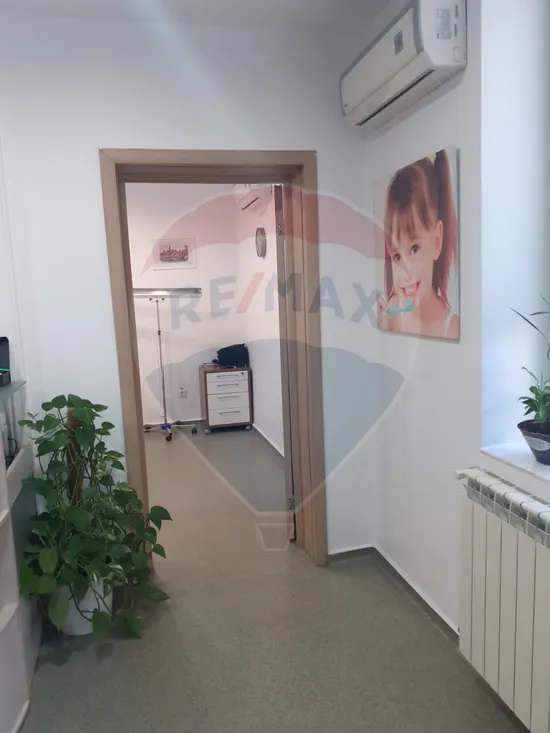 În prezent, spațiul este închiriat unei clinici medicale, ceea ce poate reprezenta un avantaj pentru cumpărătorii interesați de achiziție cu venit din chirie.