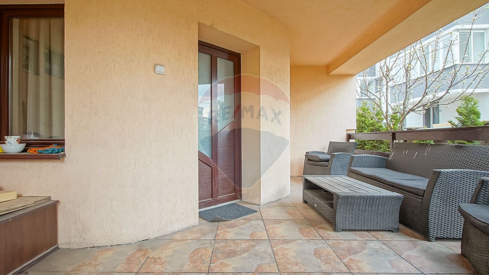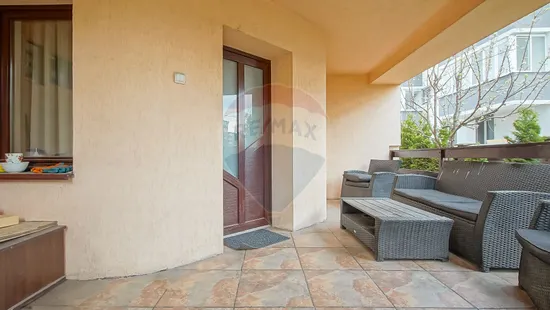 - Acces prin terasă către un vestibul primitor, ce face legătura între spațiile principale